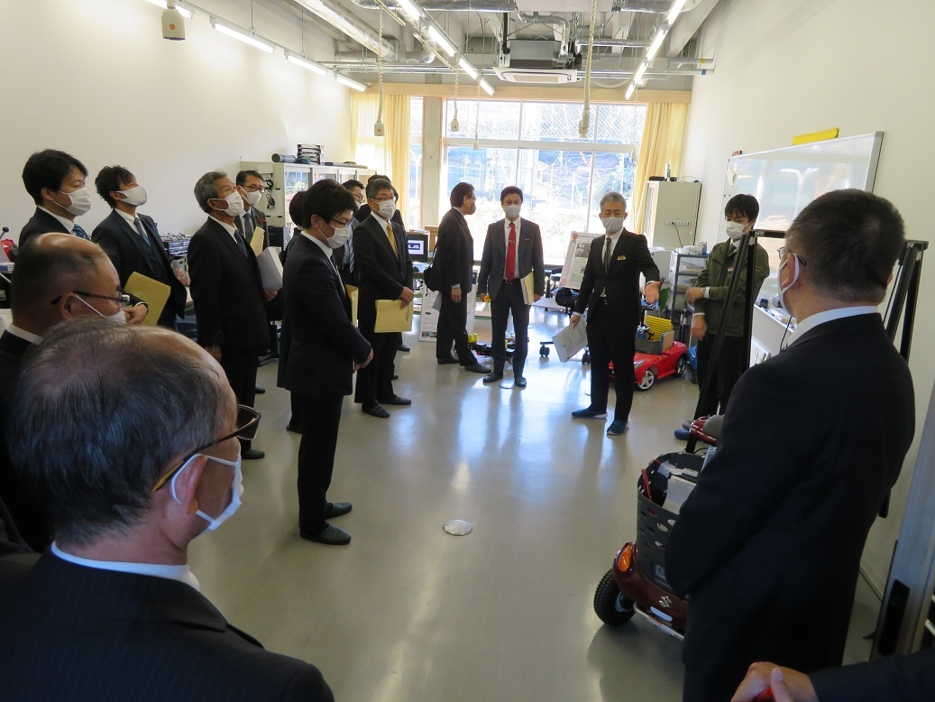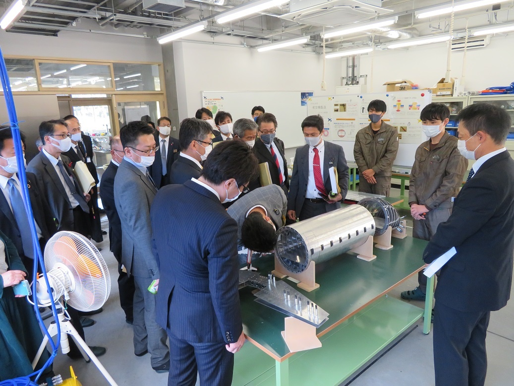 また今日は愛知県議会教育・スポーツ委員会による県内調査が行われました。愛知総合工科高校、愛知総合工科高校専攻科の概要説明、質疑応答の後、校内見学という内容でした。「航空機の製作研究」「景観観察」「航空機の製造技術の研究」「先端ロボットの制御技術の研究」「GPSを応用した飛行体とCanSatの飛行活用研究」「障がい児用移動車の研究」「東京モーターショーの成果説明」「電子制御実習」「ソーラーカー製作」など、専攻科生徒の取り組みを紹介することができました。