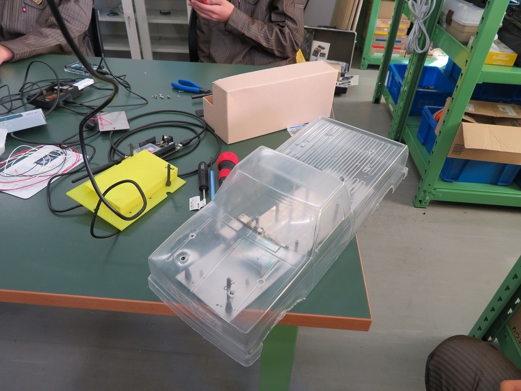 今日は1年生が総合実習でした。「高度ものづくり技能の追求と実践(メカトロニクス)」では少しずつやれることが増えています。「先端小型ロボットの開発と製作」では3Dプリンタで製作したメカナムホイールを使ったロボットが完成していました。「自動運転支援用プレビューセンサー開発と実践Ⅰ」では、教室でマッピングのためのデータ収集を行っていました。それぞれ、楽しんで実習に取り組んでいます。