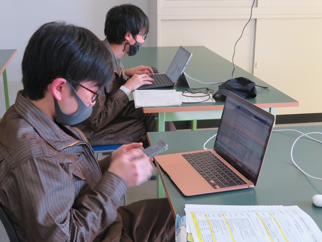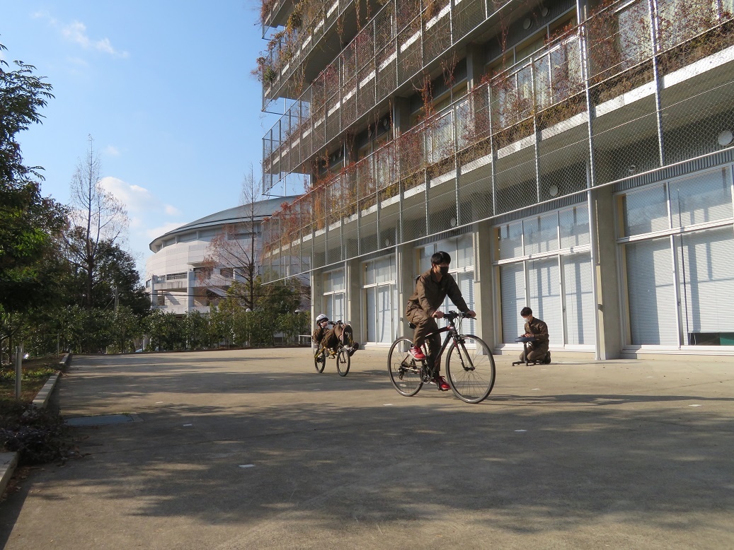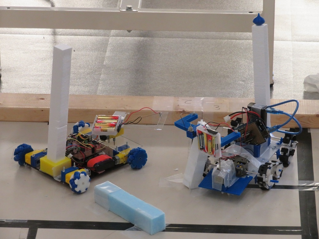 今日は1年生が総合実習でした。「先端小型ロボットの開発と実践」チームは、「相手の発泡スチロールの棒を先に焼き切った方の勝ち」というルールを設定して、製作したロボット同士を戦わせていました。詳細は動画をご覧下さい。「エコモビリティの研究と実践」チームは、製作した電気自動車で校舎周りの試走をし、計時をしていました。今年度の総合実習も残り2回となりました。