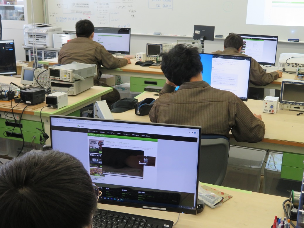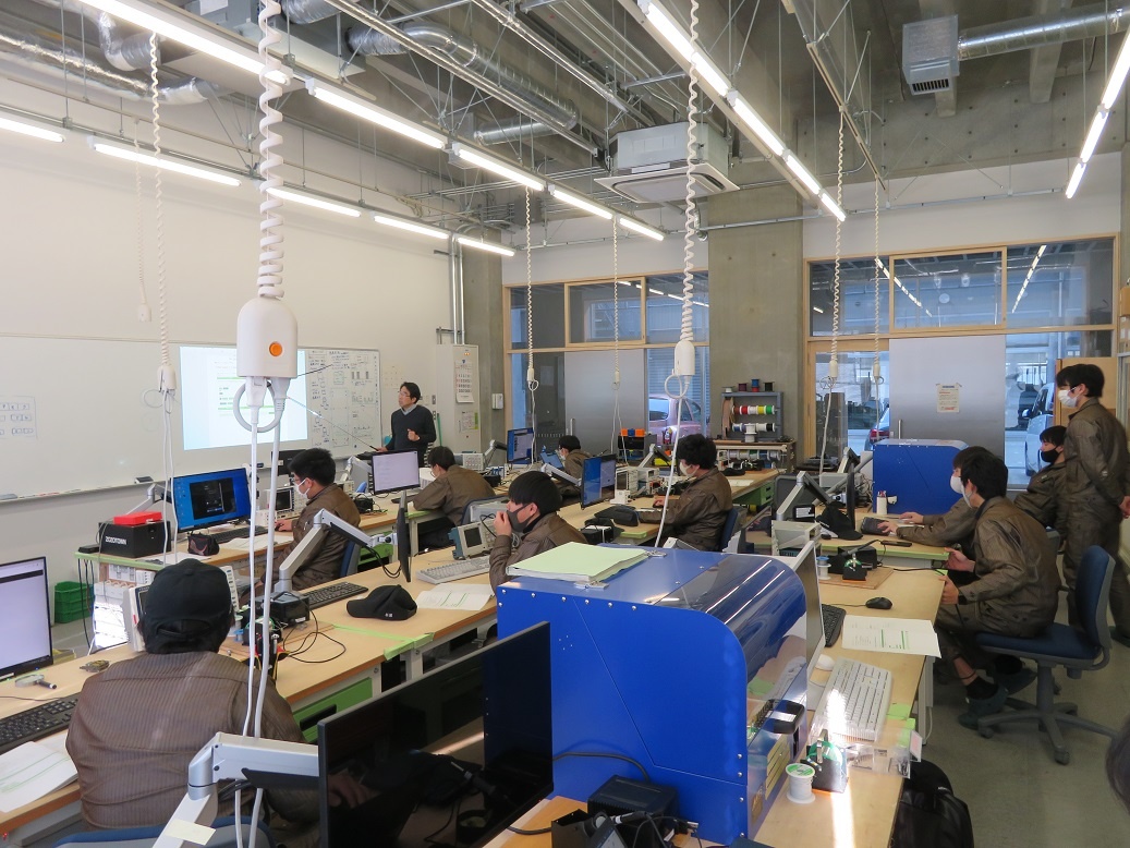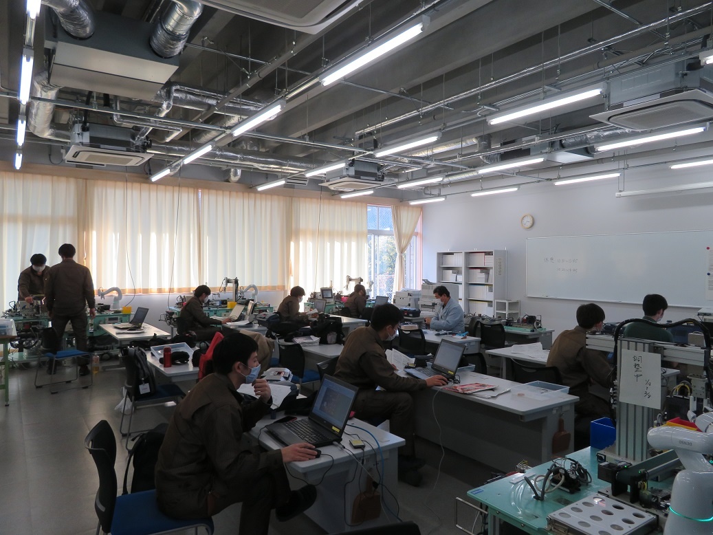2年生がコース実習でした。自動車・航空産業コースは休講だったため、3コースが実習を行いました。 産業システムは「FAネットワーク2(データ通信概要)」、情報システムは「AI・機械学習(基礎)」、エネルギー産業は幼稚園に贈るイルミネーションの作成に取り組んでいました。