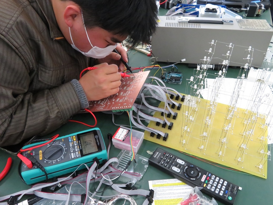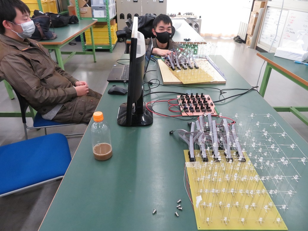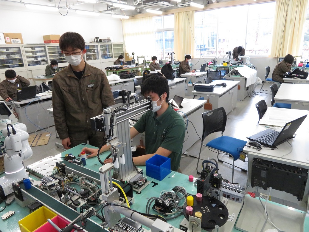 今日は2年生がコース実習でした。生産システムは「FAネットワーク(プログラミング)」、情報システムは「AI・機械学習」、エネルギー産業は幼稚園に寄贈予定のイルミネーションづくりに取り組みました。自動車・航空産業は、本日も休講で、2月5日と9日に「CAE解析」が実施されます。