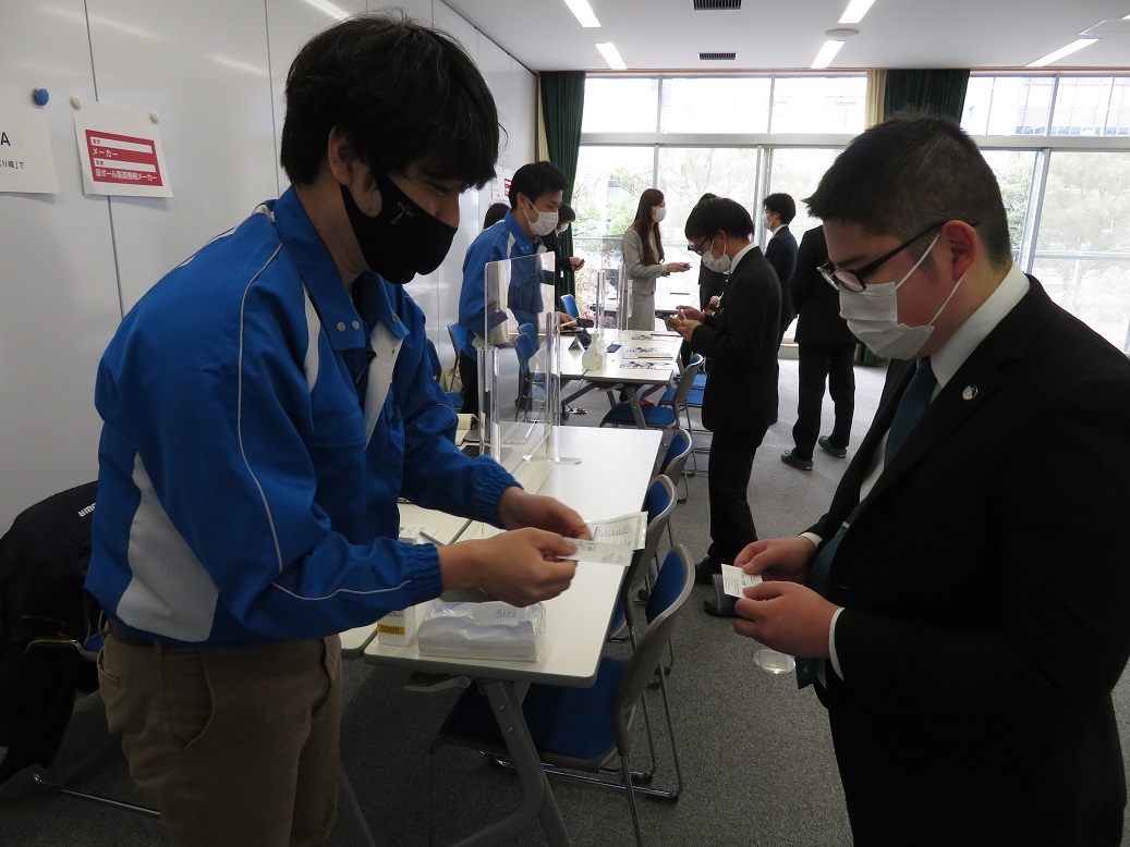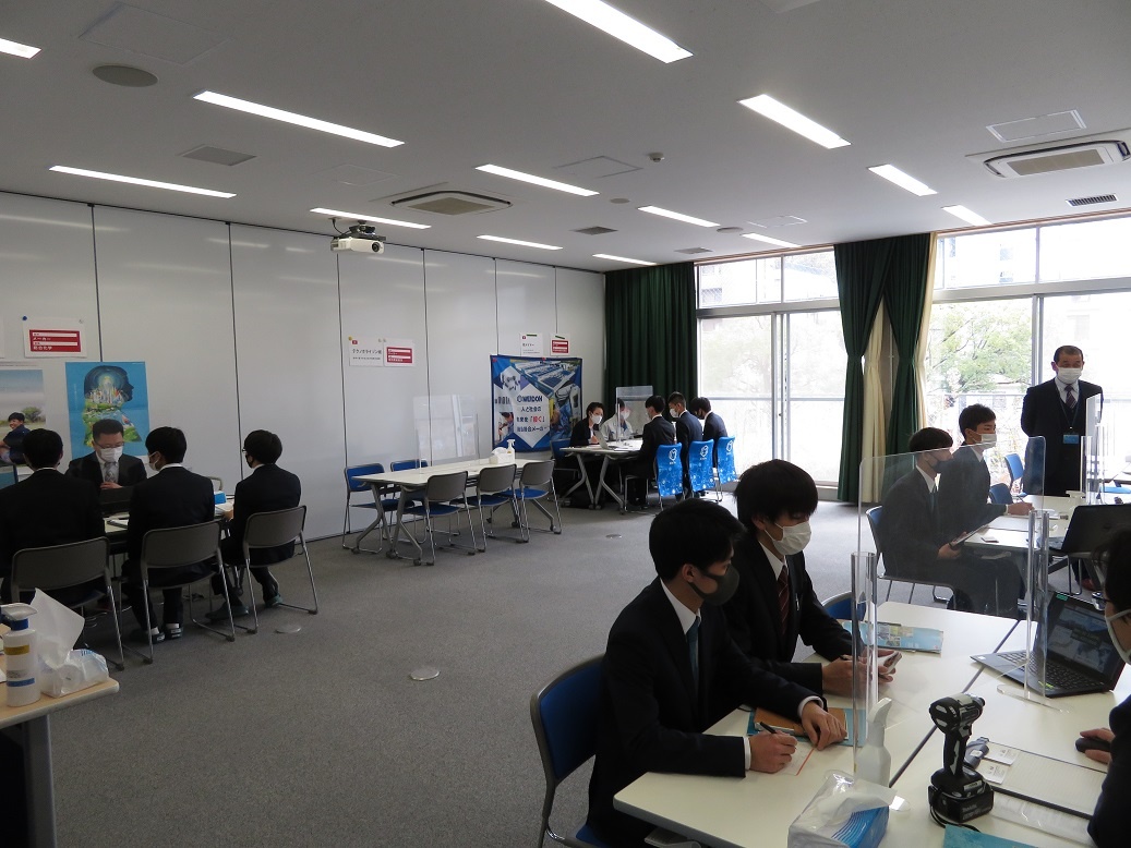 今日は1年生対象の「業界研究セミナー」が行われました。航空宇宙、自動車、通信インフラ、ミクロの分野など、様々な業種の企業34社がご参加くださいました。専攻科の先輩が就職した企業も多く、中には専攻科の先輩が説明に来てくださる企業もありました。生徒は名刺を自作し、それぞれが興味のある会社のブースをまわりました。最大で10社の説明を聞くことができ、とても貴重な機会となりました。
