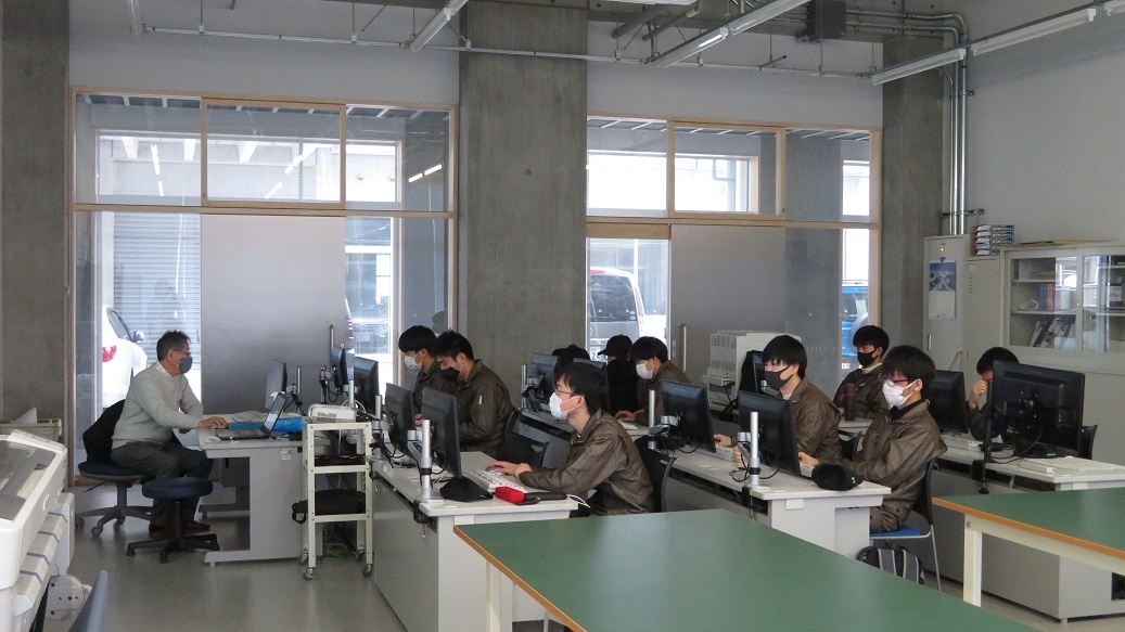 今日は令和2年度最後の授業日で、2年生コース実習が行われました。 生産システムは「FAネットワーク(装置の遠隔操作)」、情報システムは「画像認識」、自動車・航空産業は「CAE解析」、エネルギー産業は「受変電設備」について学びました。これで2年生は2月26日の修了式準備、3月1日修了式を迎えます。