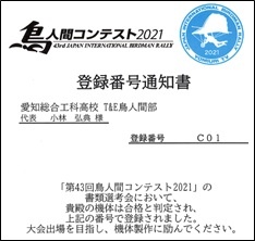 また、昨年度から鳥人間コンテスト参加に向けて総合実習で取り組んできましたが、書類選考会合格の通知が来ました。昨年度は新型コロナウイルスで大会が中止でしたが、いよいよ具体的な目標が見え、出場に向けてこれからさらに製作に気合いが入りそうです。