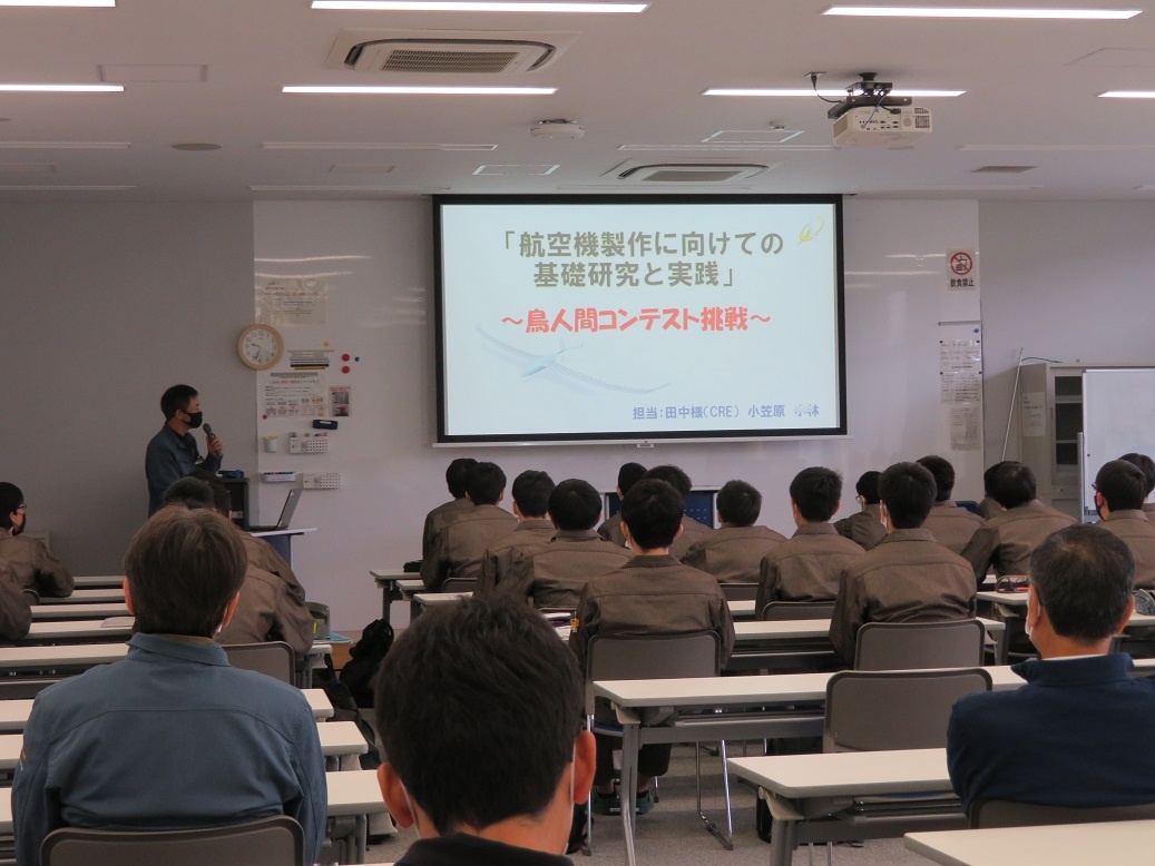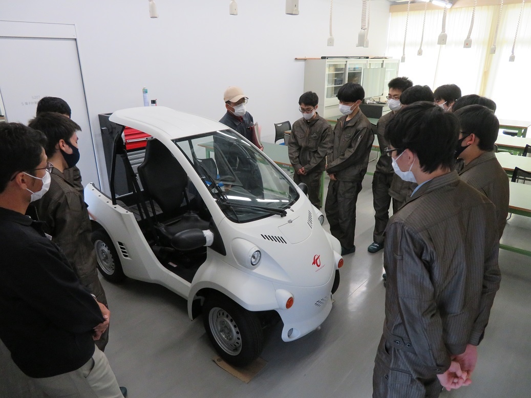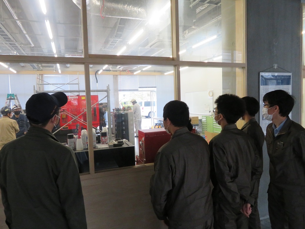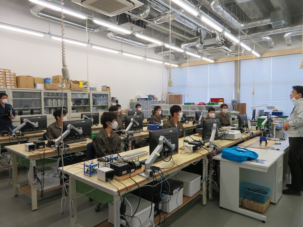 テーマ決め希望調査・安全講話・実習室紹介 実習室紹介ではコース毎に分かれ、専攻科の充実した施設・設備を見て回りました。1年生の総合実習は明日の午後から始まります。