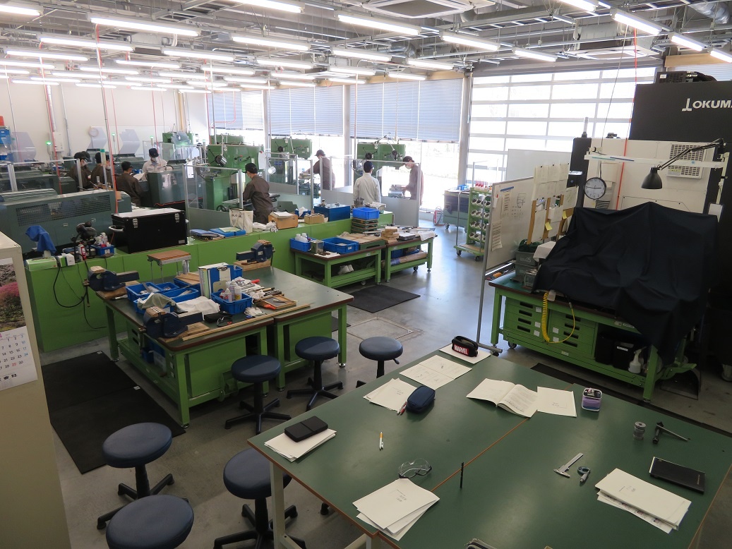 生産システムコース=旋盤/フライス(安全・理論・芯出) 情報システムコース=電子機器組立(半田作業) 自動車・航空産業コース=レーザー加工(板金加工概論) エネルギー産業コース=機械設計(機械製図基礎) ★専攻科ピア・サポート メンバー募集中です★