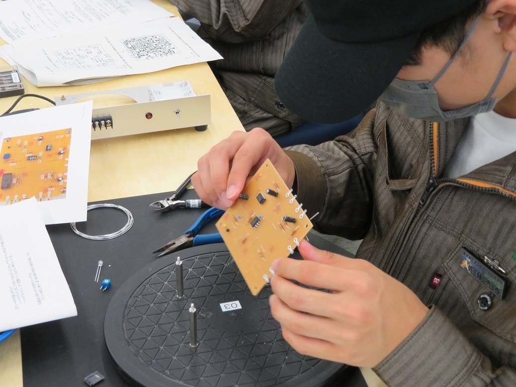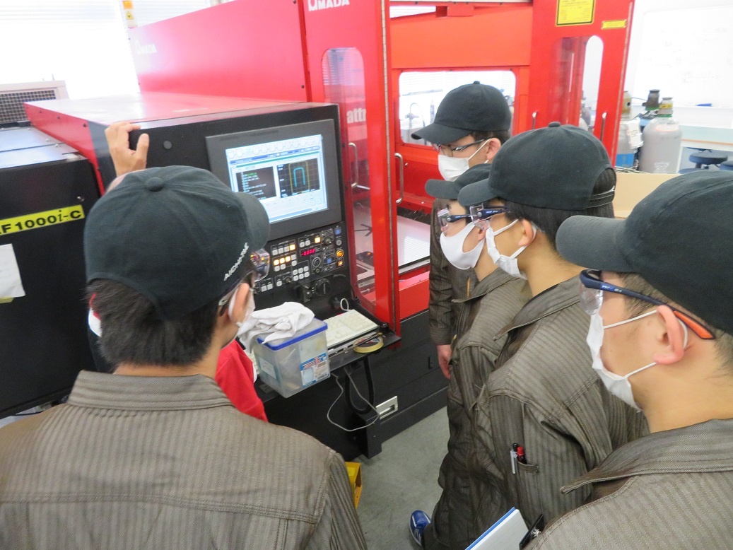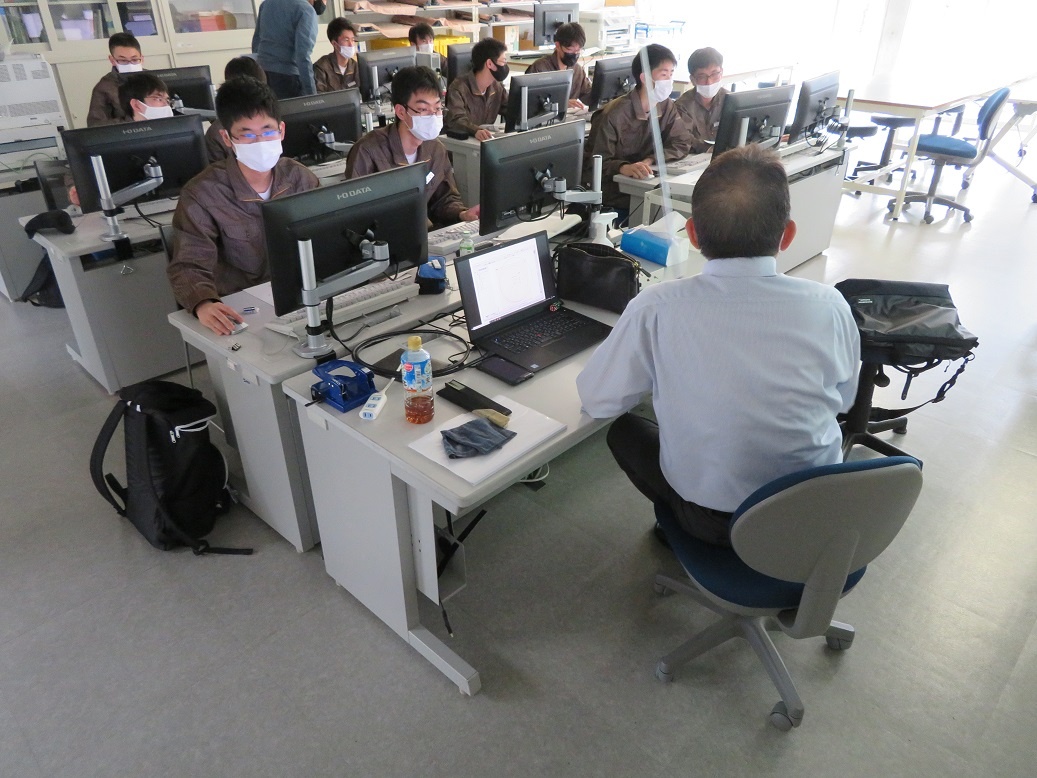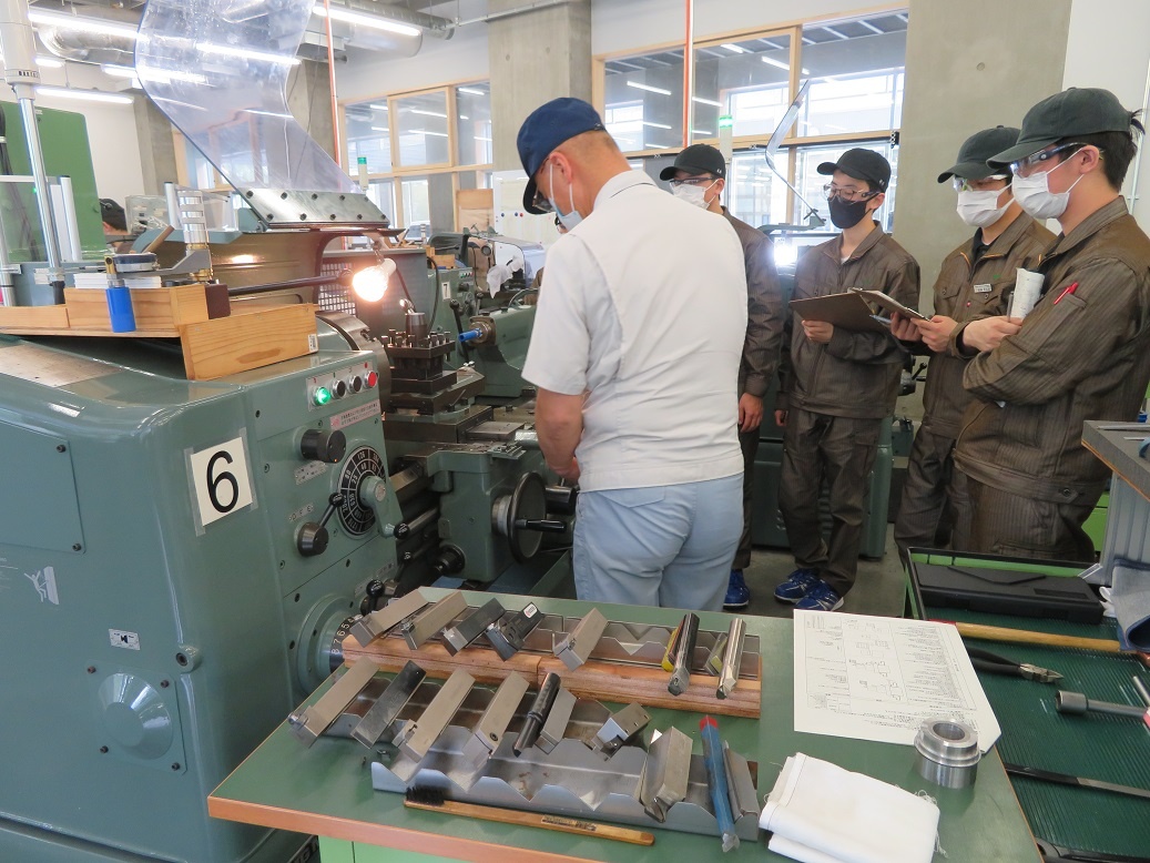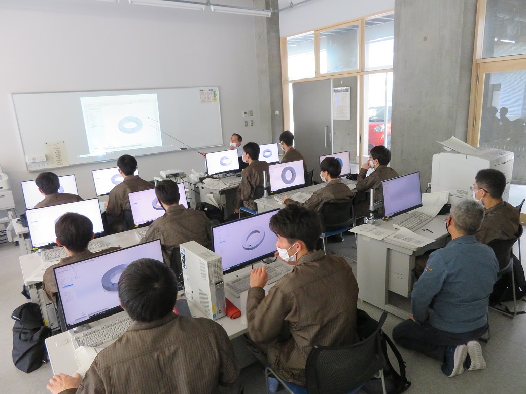 生産システムコースは「旋盤/フライス(偏芯・ねじ組立)」、情報システムコースは「電子機器組立(ケース組立)」、自動車・航空産業コースは「レーザー加工(CADCAM)」、エネルギー産業コースは「機械設計(ソリッドワークス)」に取り組みました。