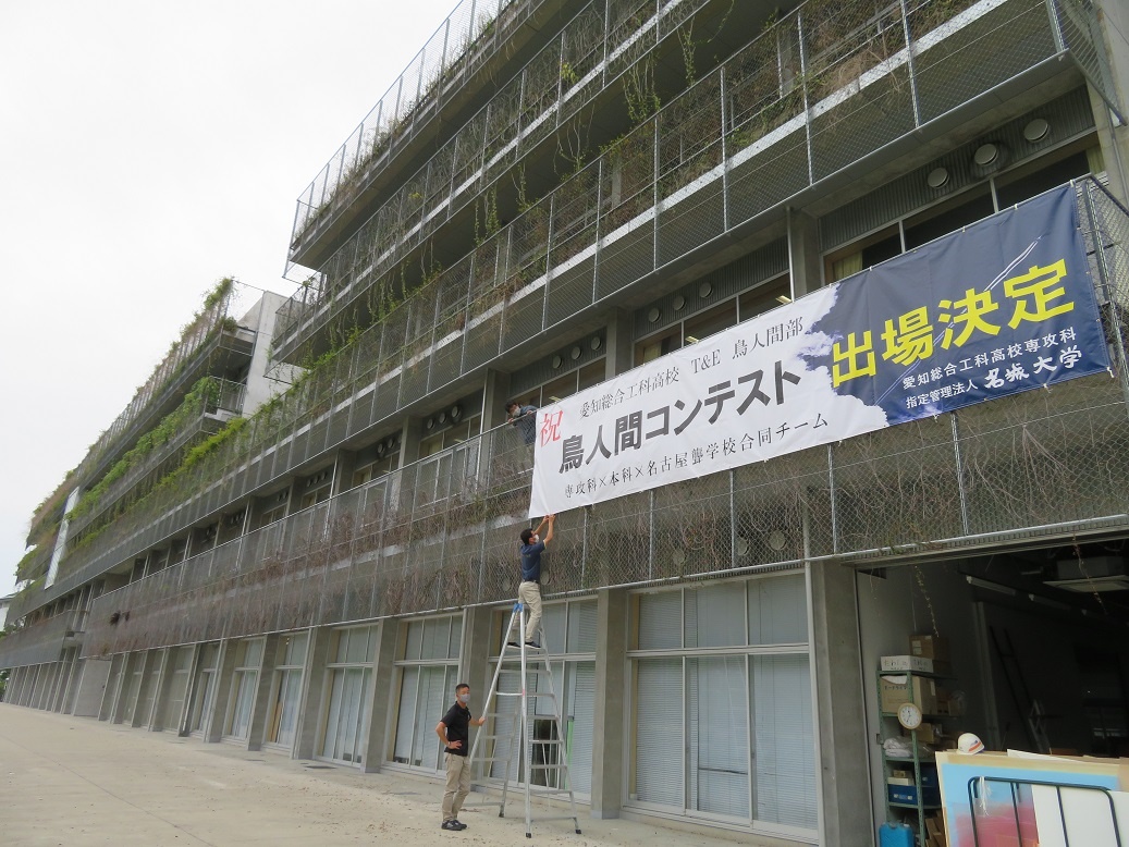 総合実習Ⅰ「航空機製作に向けての基礎研究と実践(鳥人間コンテスト挑戦Ⅰ)」、総合実習Ⅱ「航空機製造技術の研究と実践(鳥人間コンテスト挑戦Ⅱ)」で、本科と名古屋聾学校と取り組んでいる合同チーム、初の鳥人間コンテスト出場決定を祝して専攻科2階、プレゼンテーションルーム前に横断幕を設置しました。ぜひ見てください♪