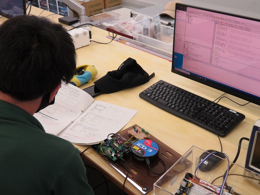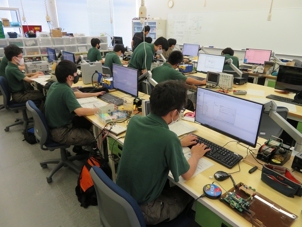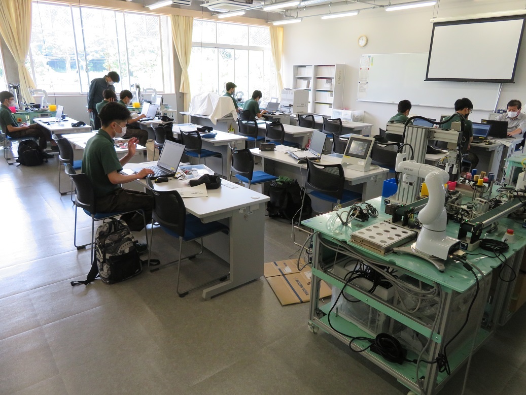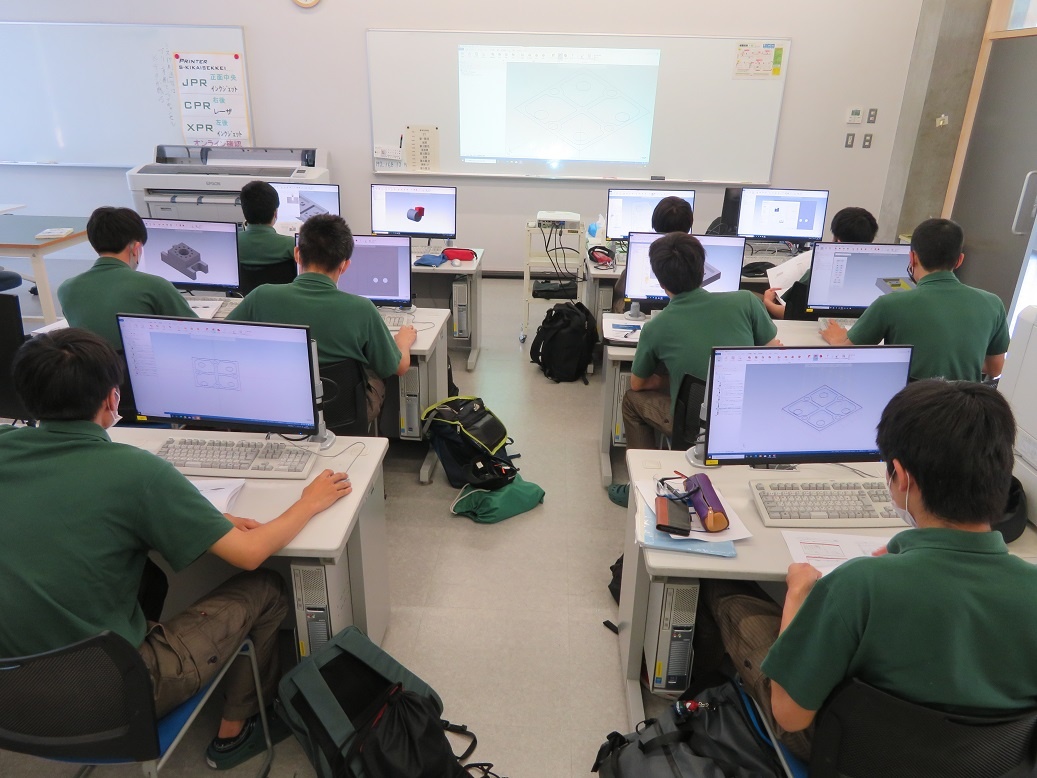生産システムコースは「マシニングセンタ5軸Ⅱ」、情報システムコースは「マイコン制御基礎」エネルギー産業コースは「PLC応用」について学びました。自動車・航空産業コースは校外実習で「金型製造」について学びました。