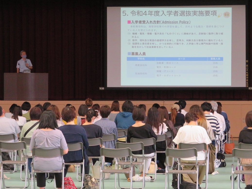 各テーマ取り組みました。部品を作るためにCAD(コンピュータ支援設計)が活躍しています。 今日は本科3年生保護者向け進路説明会が行われ、専攻科も説明を行いました。