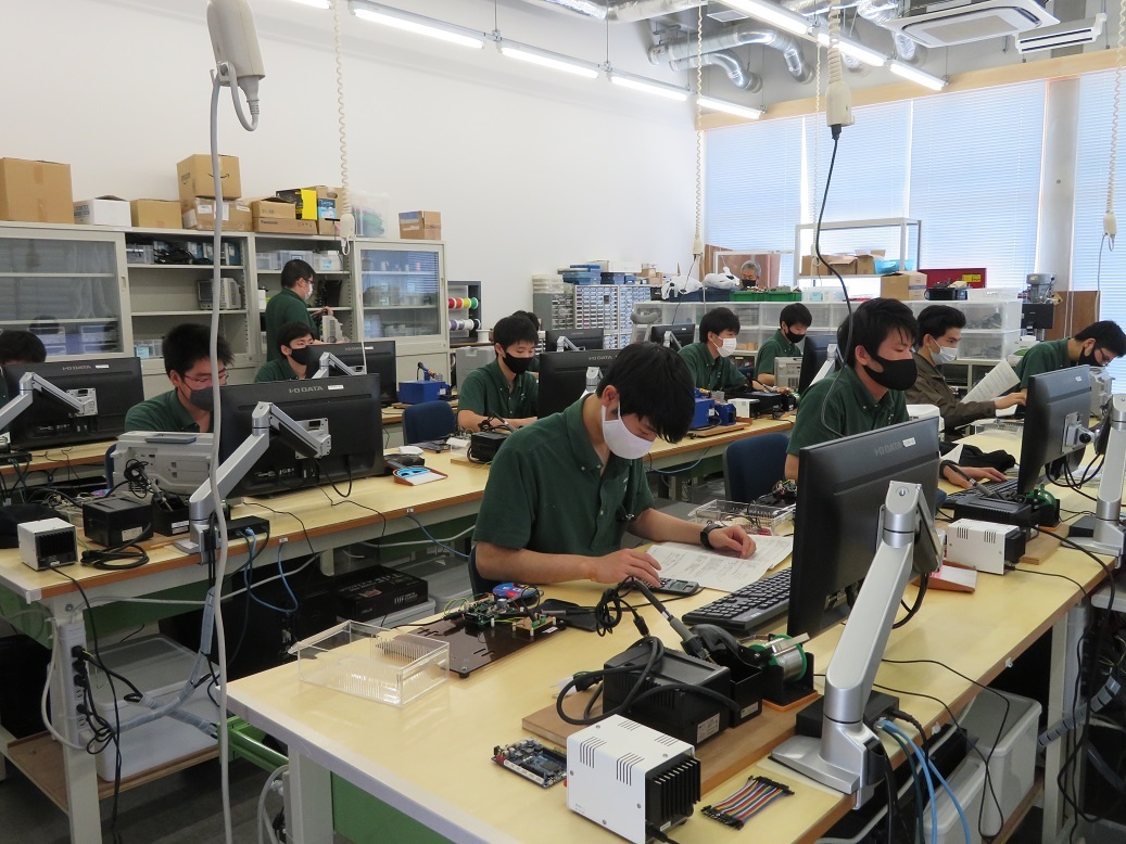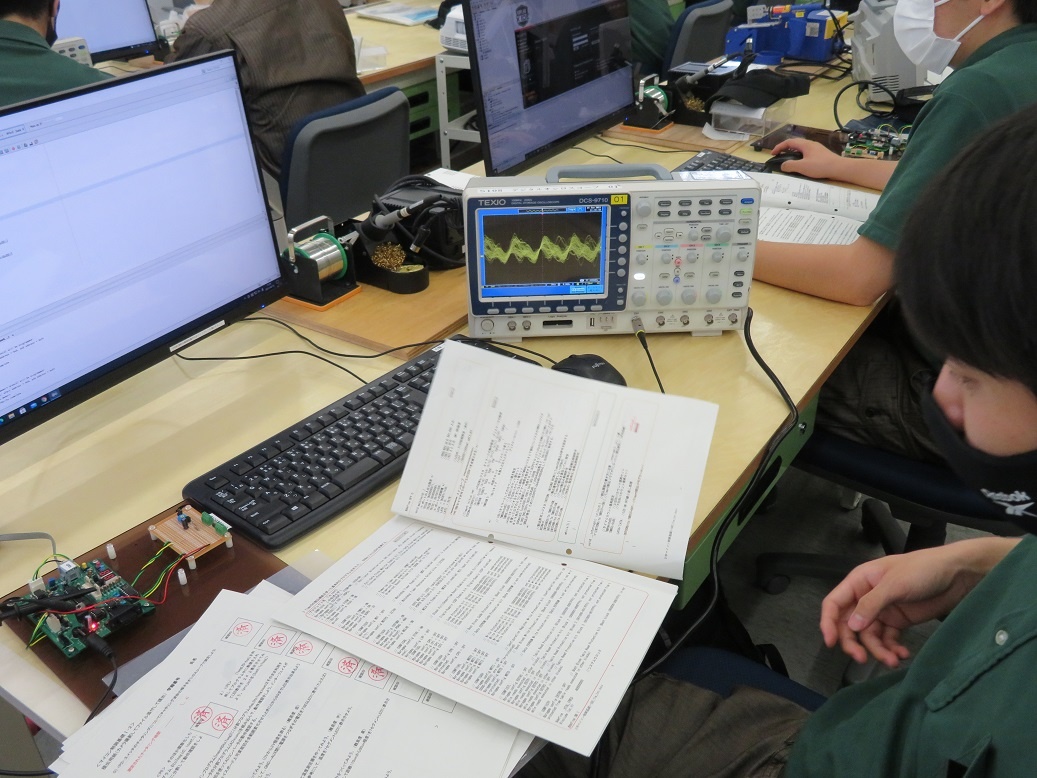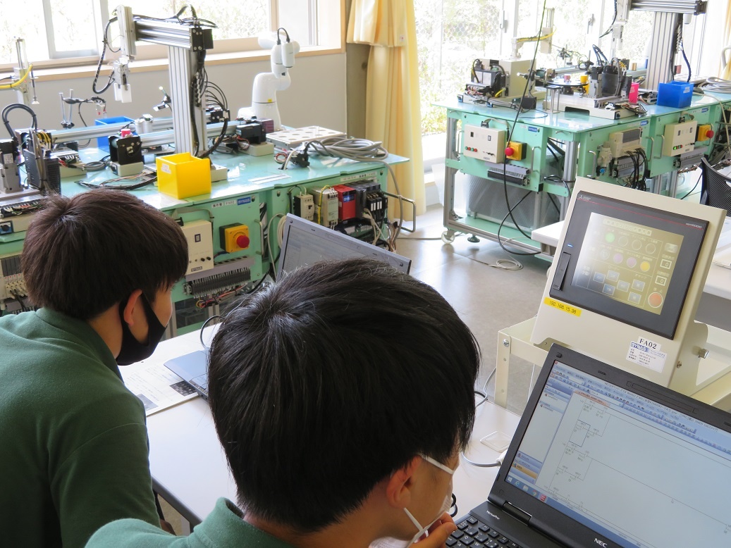 生産システムコースは「マシニングセンタ5軸Ⅱ」、情報システムコースは「マイコン制御基礎」、エネルギー産業コースは「PLC応用」に取り組みました。 業後はピア・サポーター活動(生徒同士で助け合う活動)をしているメンバーが学校説明会に向けて話し合いを行いました。
