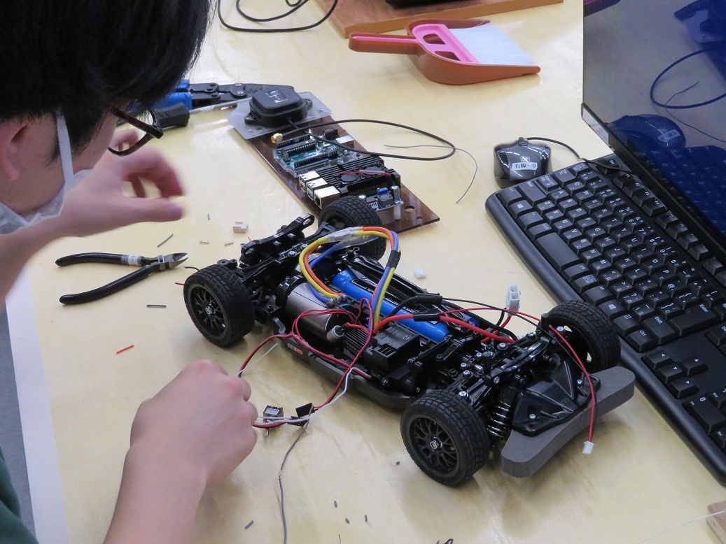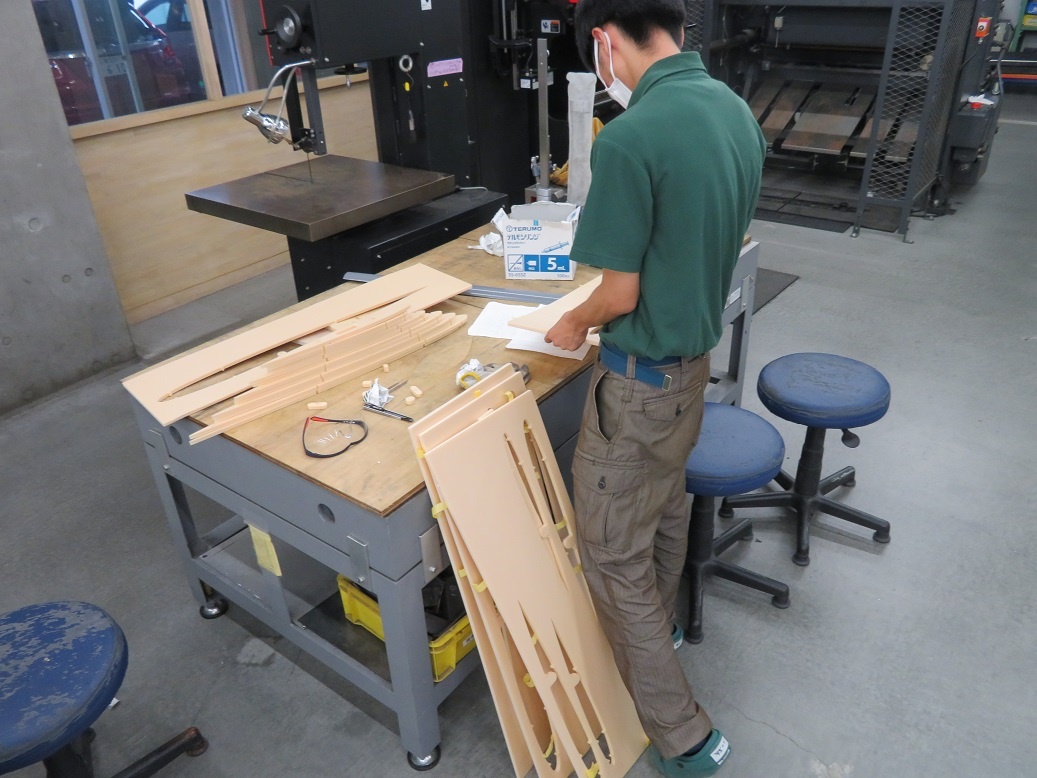 それぞれのテーマに取り組みました。 「アグリテクノロジー機器の開発と知的財産化」では、『①CADでデータを作成 ②レーザー加工機で切断 ③溶接で接合』の手順で部品を作りました。自分で考えたものが、形になっていくことはとても良い経験になると言っていました。
