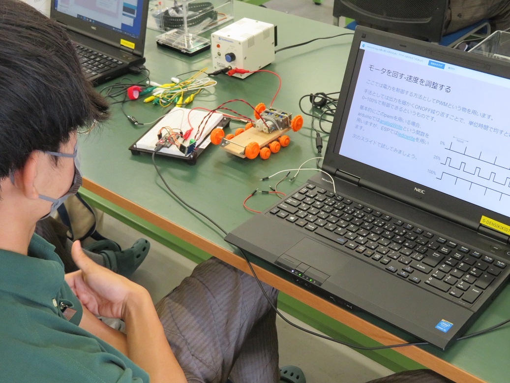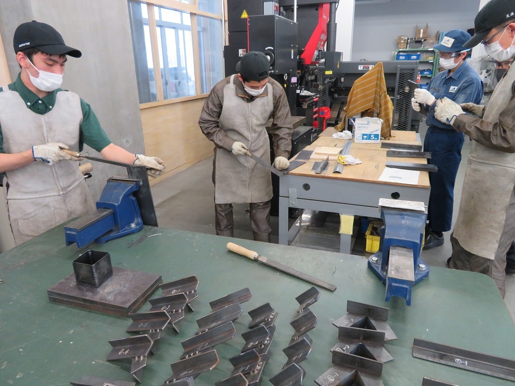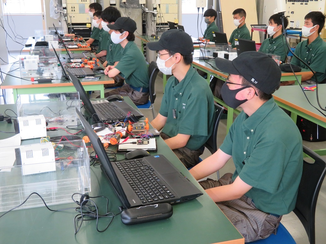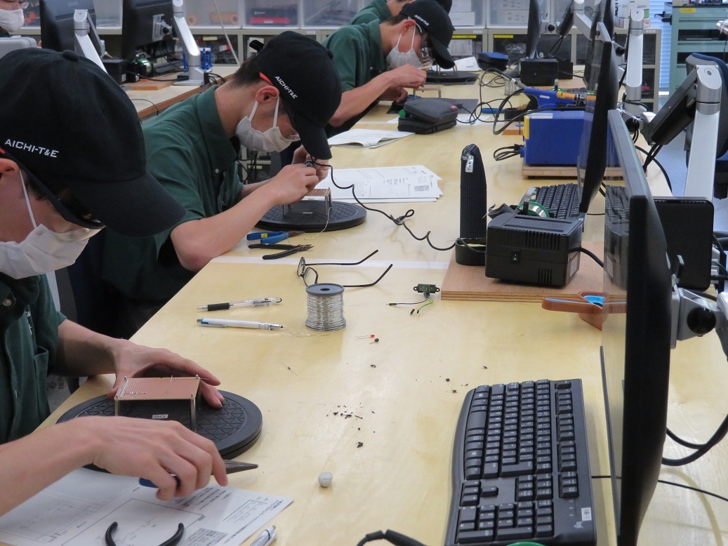 生産システムコースは「マシニングセンタ3軸Ⅰ」、情報システムコースは「赤外線ロボット」、自動車・航空産業コースは「旋盤/フライス/溶接」、エネルギー産業コースは「電子機器組立」と、各コース新しいテーマに取り組みました。