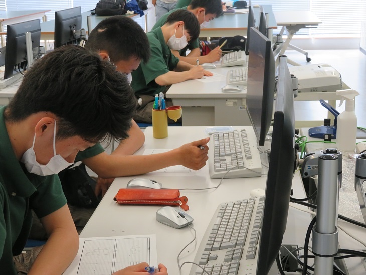 今日は本校実習室で技能五輪の愛知県予選が行われました。2年生の山口君が出場し、日頃の練習成果を発揮しました。