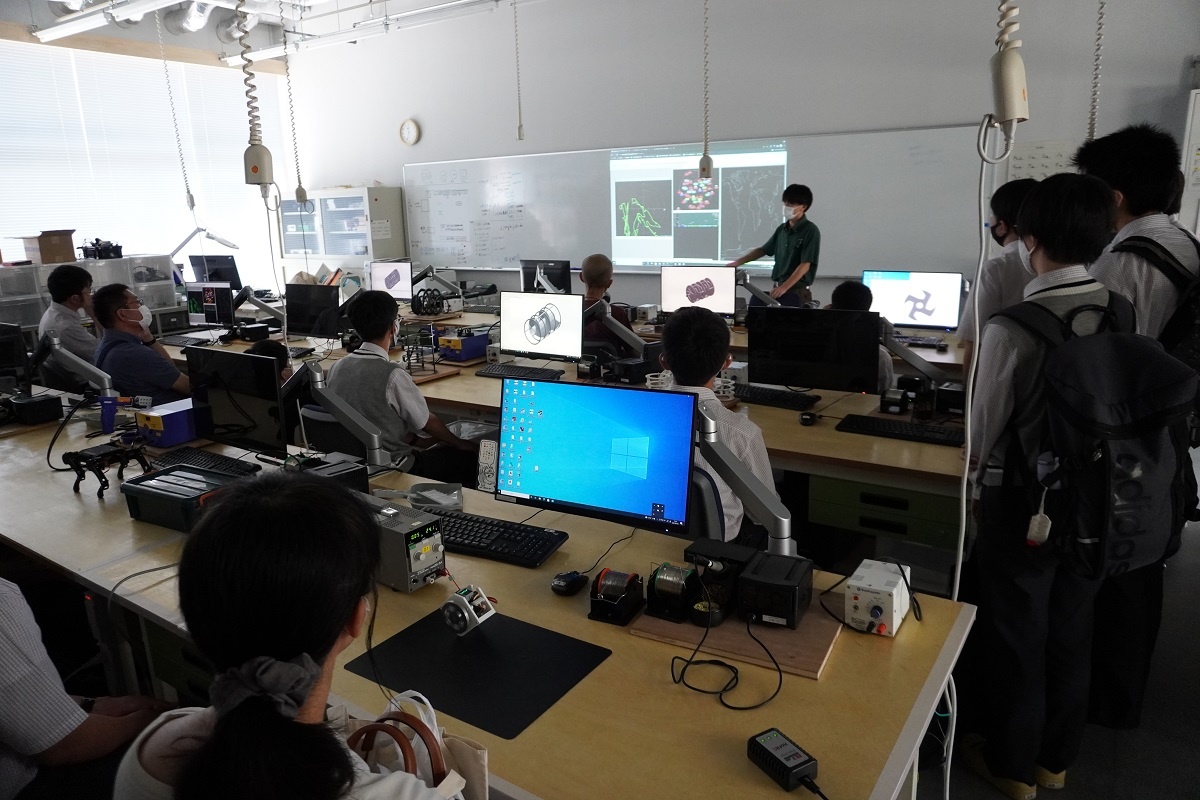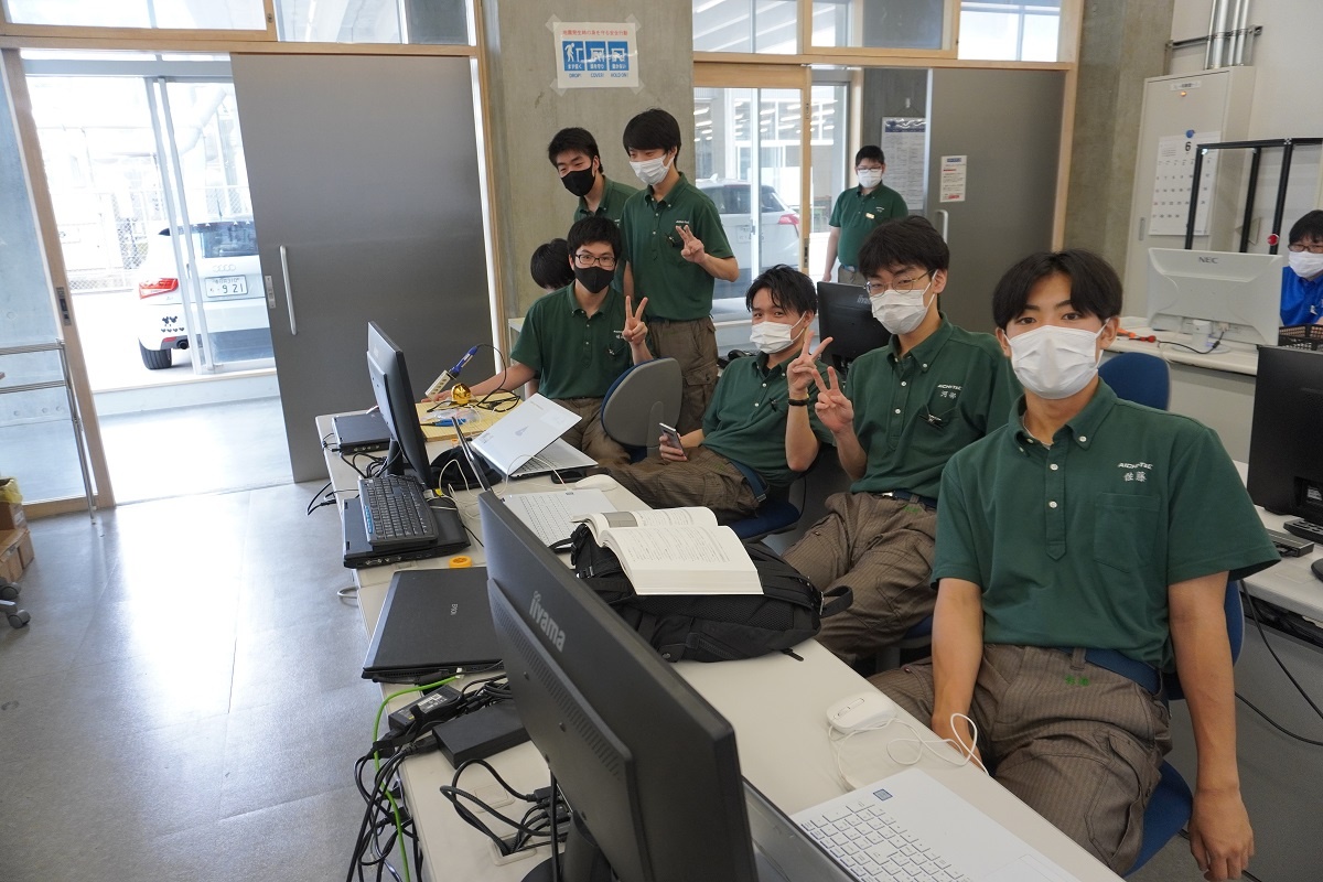 7月10日(土)は学校説明会でした。予想を大きく上回り、生徒・保護者合わせて171名の方に来場いただきました。生徒たちは前日の準備から当日は総合実習の紹介など来て下さった方にしっかり説明できました。また午後は鳥人間コンテスト班が、グラウンドで走行試験を行いました。