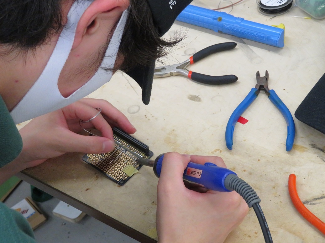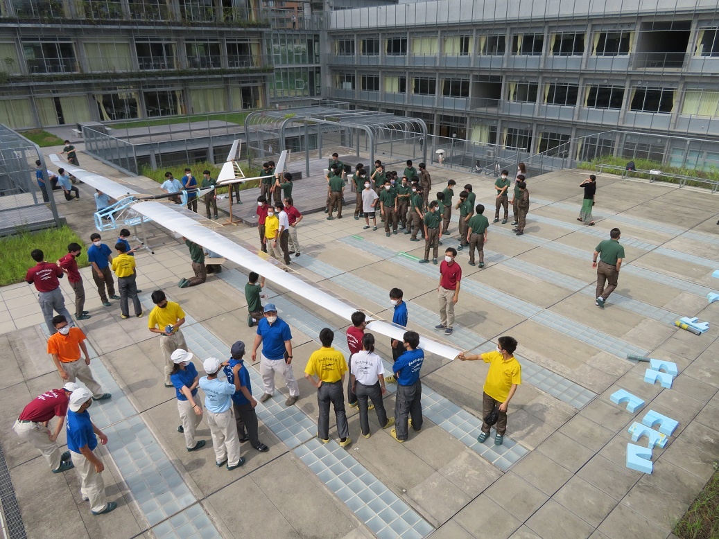 それぞれテーマに取り組みました。 午後からは、「航空機製作に向けての基礎研究と実践(鳥人間コンテスト挑戦Ⅰ)のメンバーと、本科、名古屋聾学校の生徒みんなで、学校の屋上で組立練習を行いました。