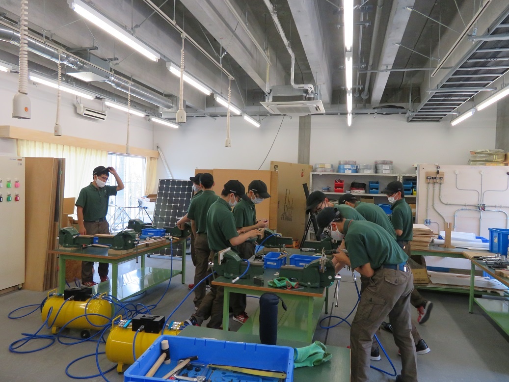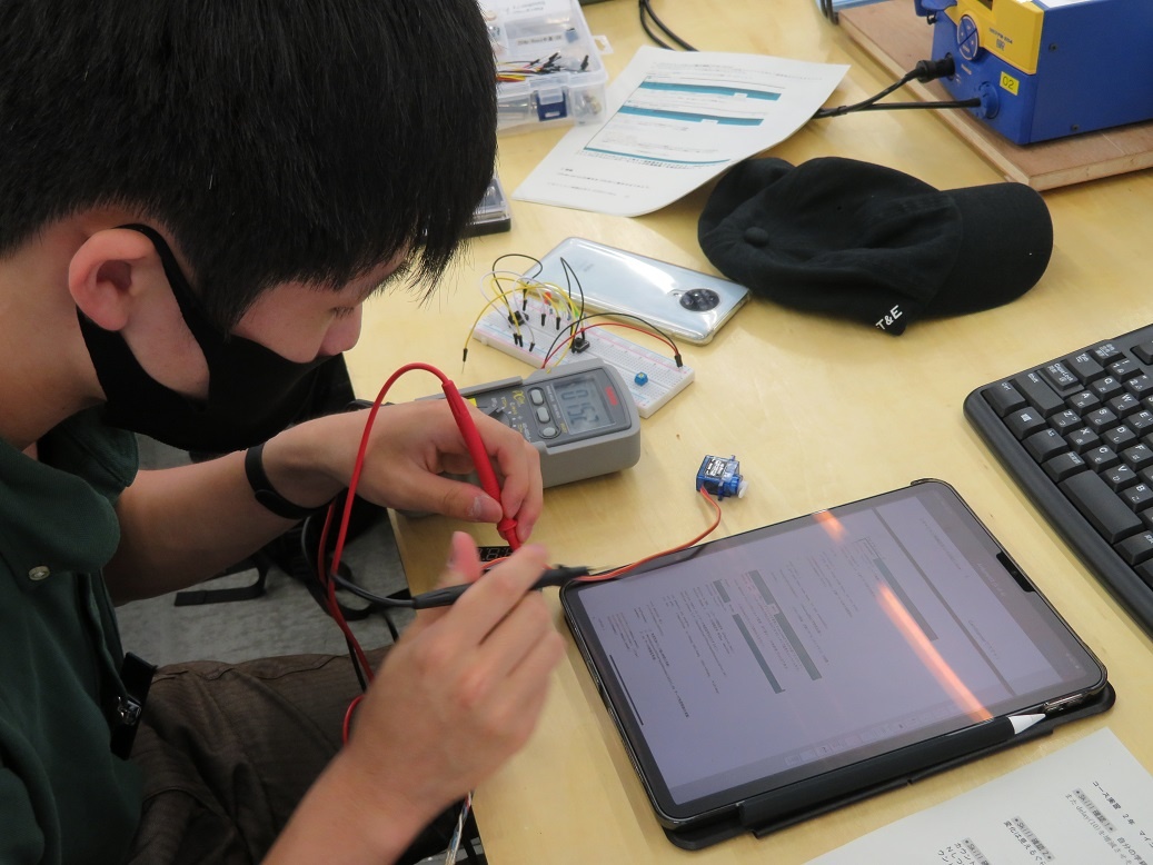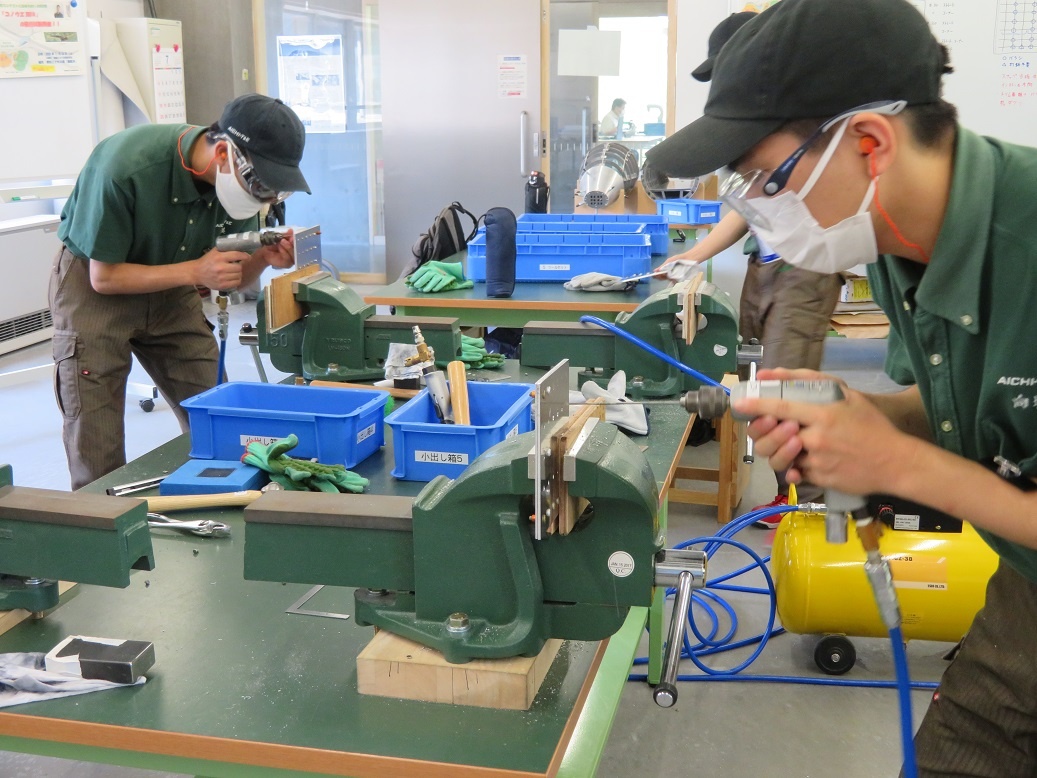 生産システムコースは「ロボット教育」、情報システムコースは「マイコン制御応用」、自動車・航空産業コースは「航空機製造Ⅱ」、エネルギー産業コースは「SCR IGBT」に取り組みました。エネルギー産業コースでは“あいちT&Eサポーター”企業による実機の製作や検査などの実習を行いました。