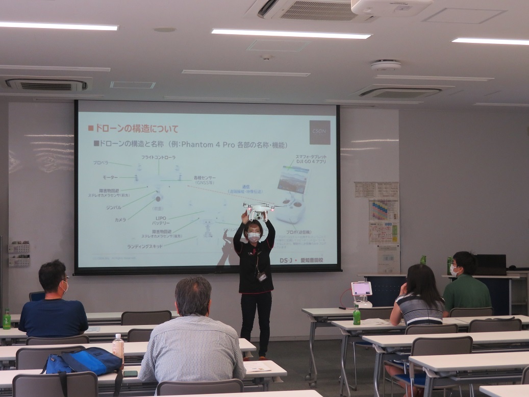 午後から「令和3年度 第1回PTA校内研修会(ドローン体験)」が検温・消毒・ソーシャルディスタンスなどの感染対策をしっかり行った上で開催されました。8名の保護者の方にご参加いただきました。講師としてドローンスクールジャパン愛知豊田校の方に来ていただき、法規やライセンス制度についての座学のあと、実機運転を行いました。2時間という短い時間ではありましたが、和気藹々とした会になりました。