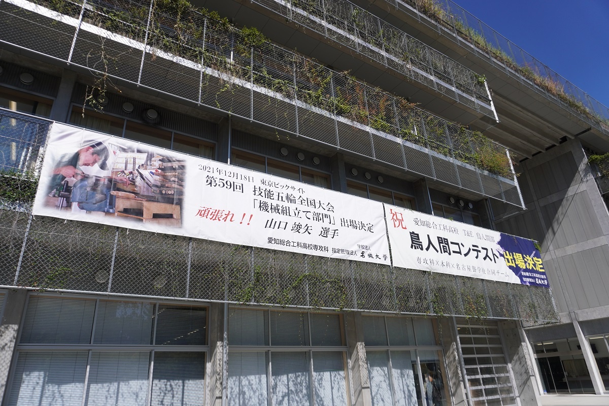 今日の総合実習は、明日の学校説明会に向けての準備を行いました。 また専攻科生徒、本科生徒の技能五輪全国大会出場に向けて、校舎南側に新しい横断幕が設置されました。