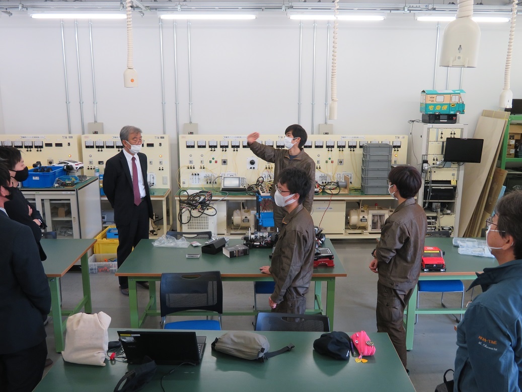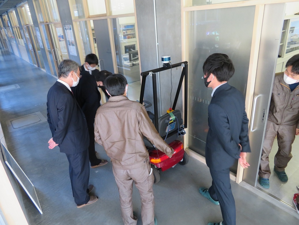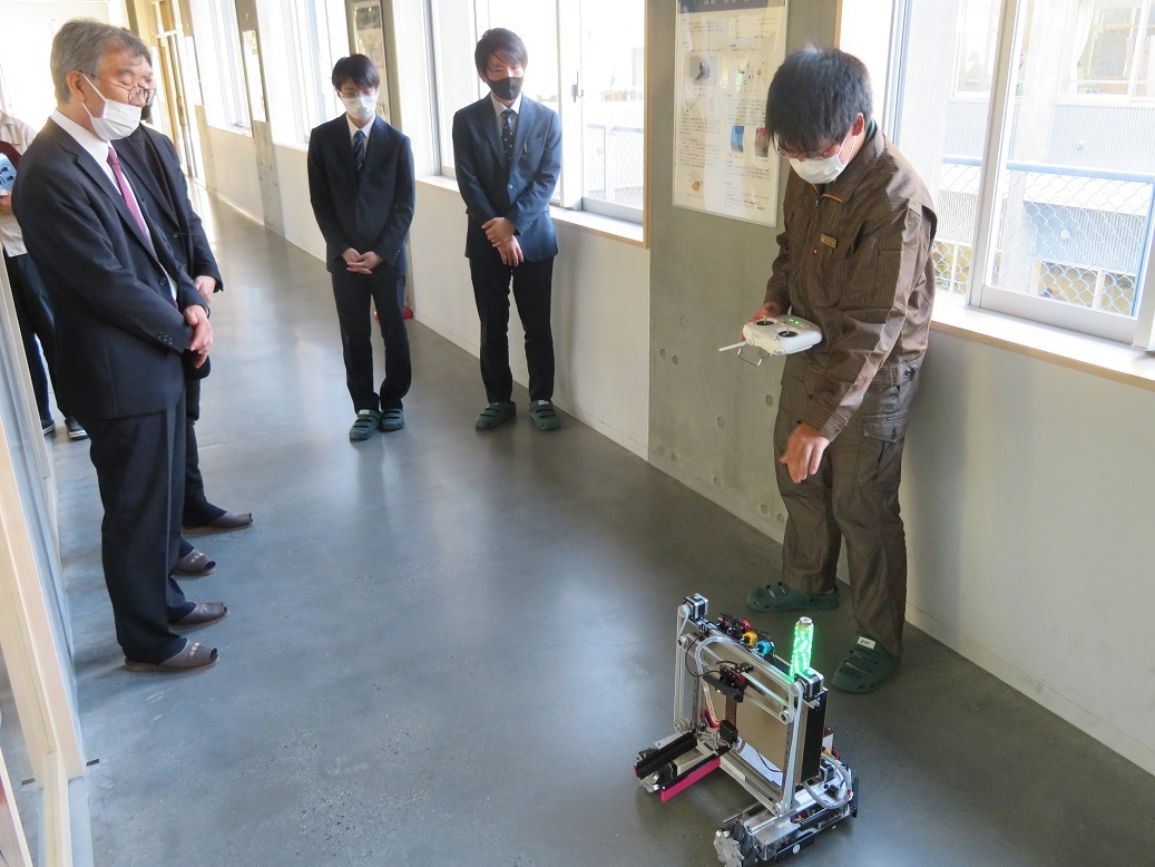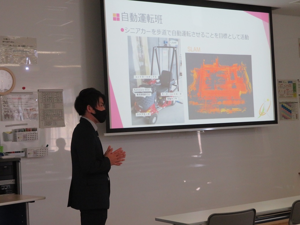 今日は、来年3月に予定している国際ロボット展出展に向けて活動を行いました。T&Eサポーターでもある企業様にご来校いただき、生徒が総合実習で取り組んでいる活動のプレゼンを見ていただきました。