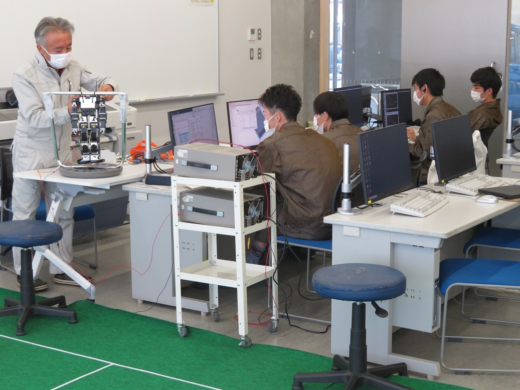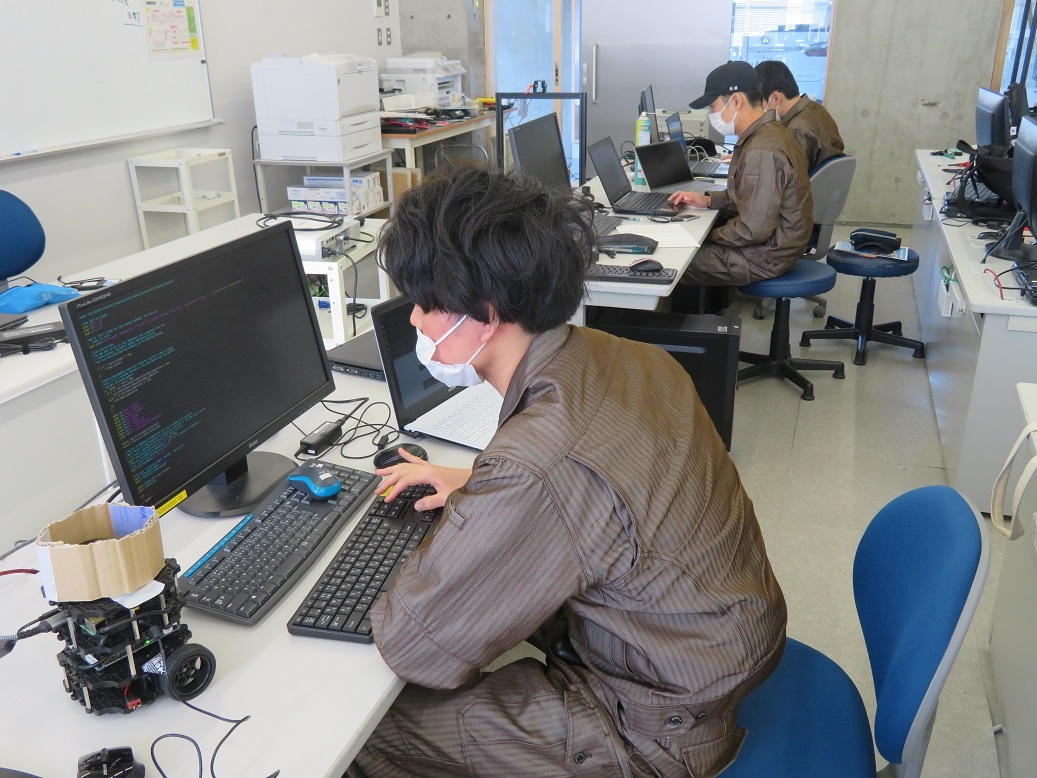 今日の「AI講習」は「自動車設計手法の習得」班と、「エコモビリティ技術・再生可能エネルギーの研究と実践」班です。トヨタ自動車株式会社の方を講師に迎え、Python(Sagemaker)を使った解析環境で何が出来るか、またAIの実装についての概要を理解する等について、2日間で取り組みます。