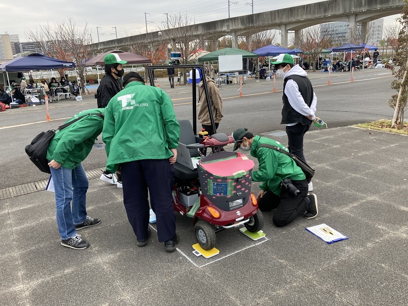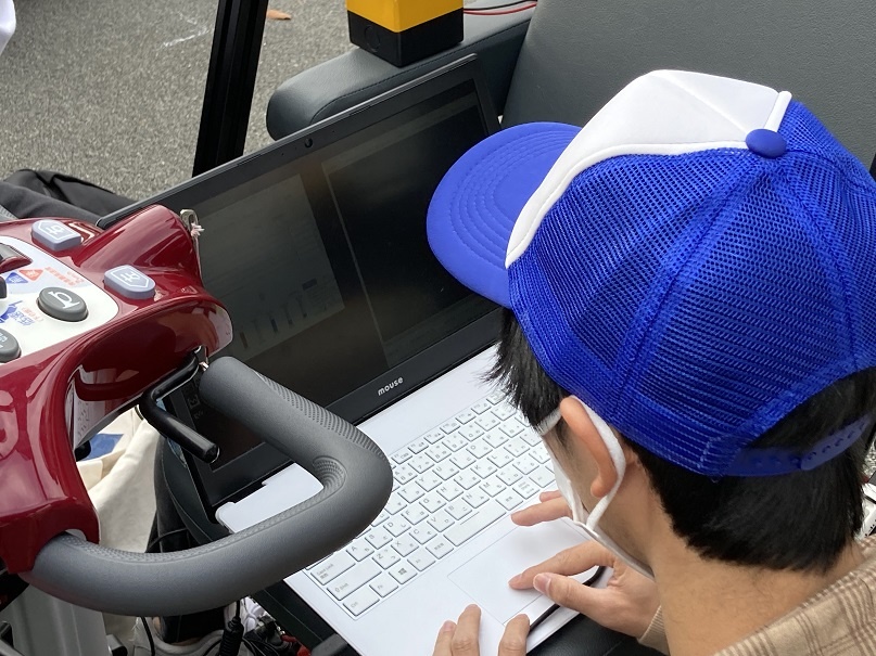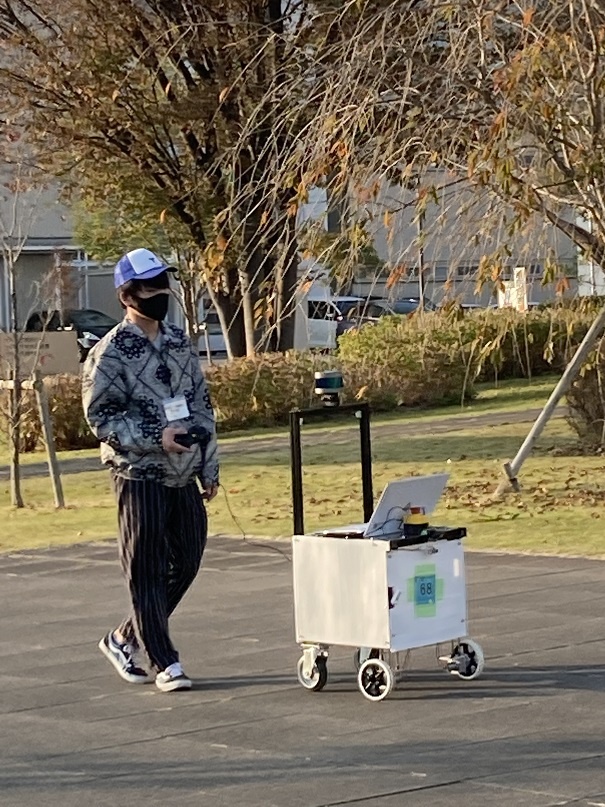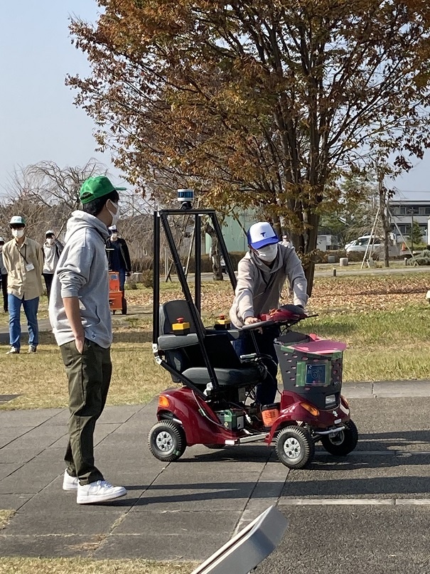 総合実習Ⅱ「自動運転支援用プレビューセンサー開発と実践Ⅱ」班は、週末、茨城県つくば市にて開催された共同実験会「つくばチャレンジ2021本走行」に参加しました。コースは市役所~歩道~公園の往復で行われ、学校では壁に沿って自動運転できましたが、つくばでは公道のため目印が少なく、連続のCSVデータを作ることができませんでした。今回初参加をして、他大学と交流することで改善のヒントを得ることができました。来年の活躍を期待します。