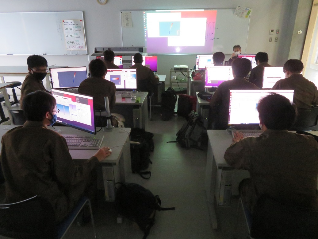 生産システムコースは「ロボット制御(基本プログラミング)」、情報システムコースは「AI・機械学習(python学習)」、自動車・航空産業コースは「CAE解析Ⅰ(EasyISTR)」、エネルギー産業コースは「電力インバータ(ACサーボ制御)」(校外実習)にそれぞれ取り組みました。