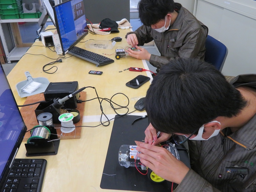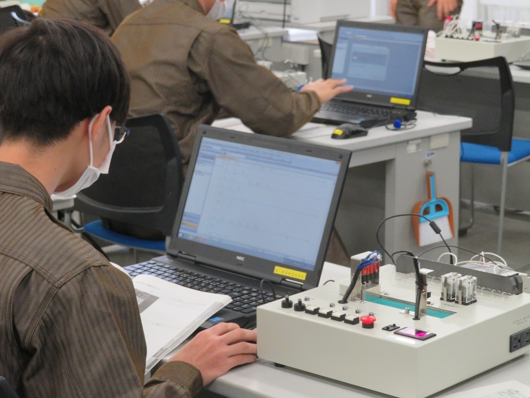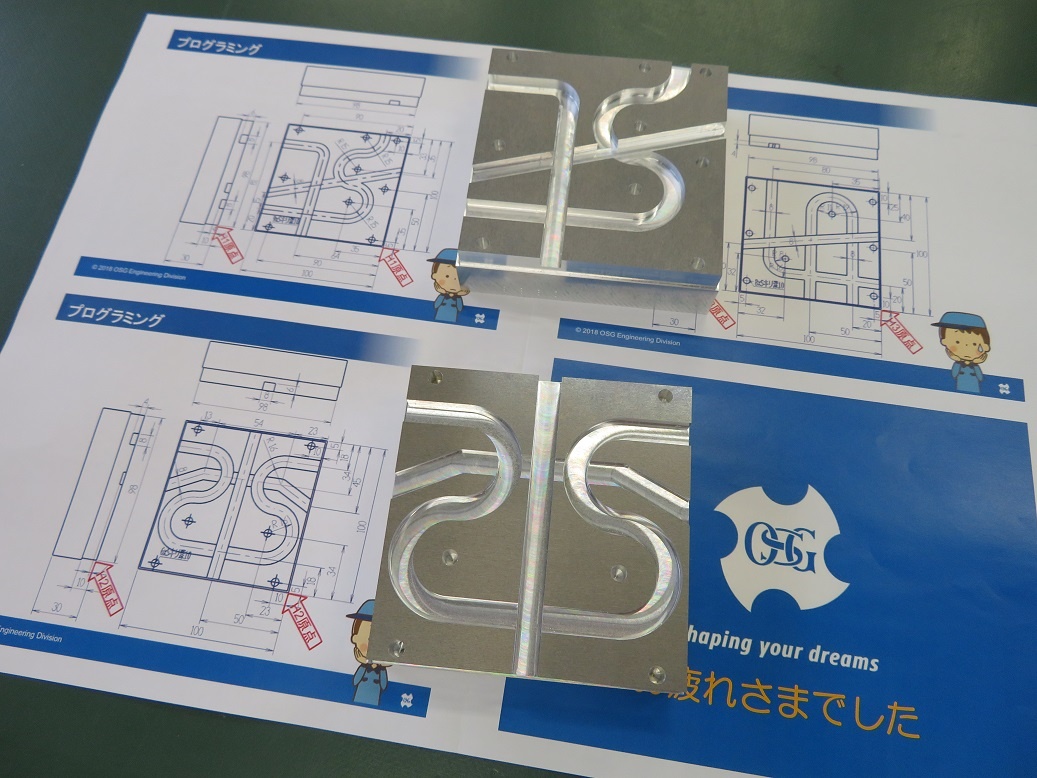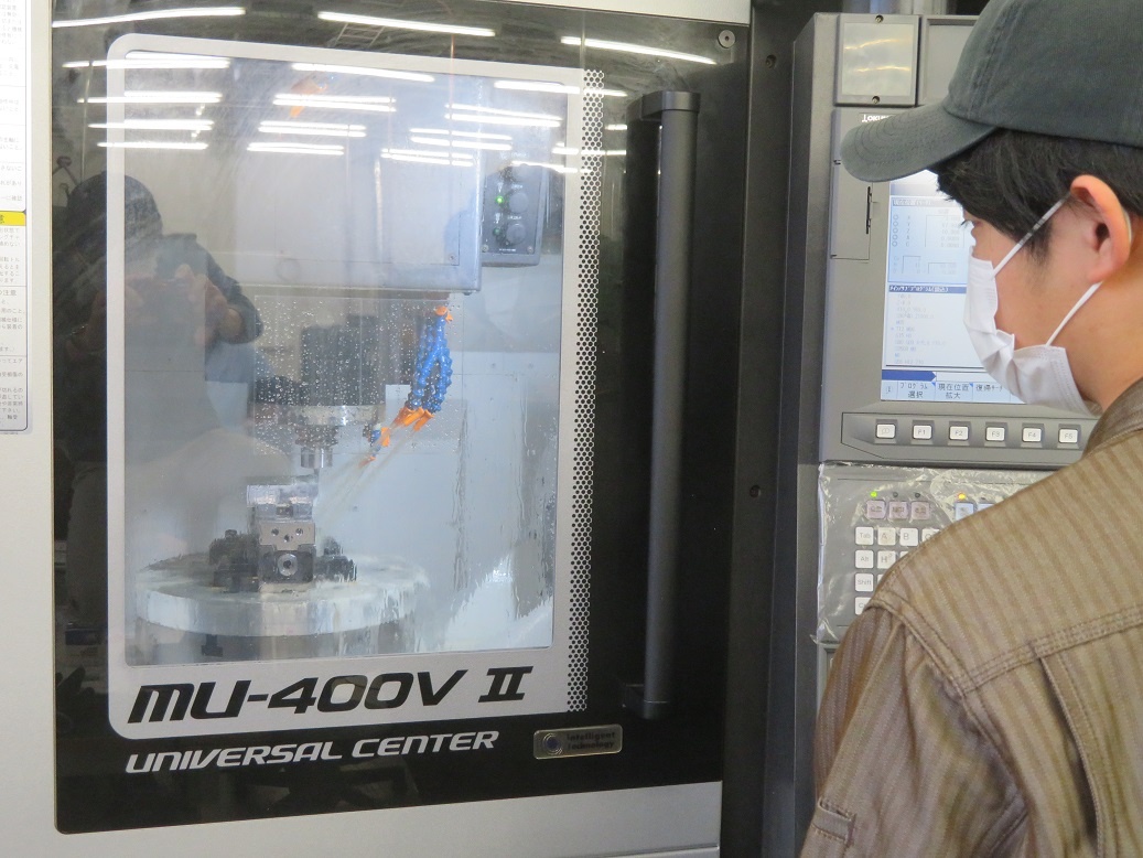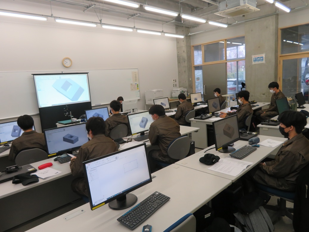 生産システムコース「マシニングセンタ5軸Ⅰ」、情報システムコース「ソフトウエア」、自動車・航空産業コース「3DCAD」、エネルギー産業コース「シーケンス・PLC」に取組ました。「マシニングセンタ5軸Ⅰ」では、専用CADソフトの基本的な操作方法を学び、実際に5軸のマシニングセンタで加工しました。