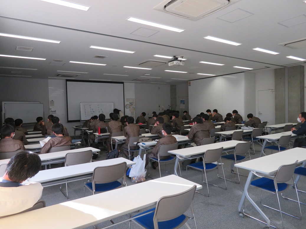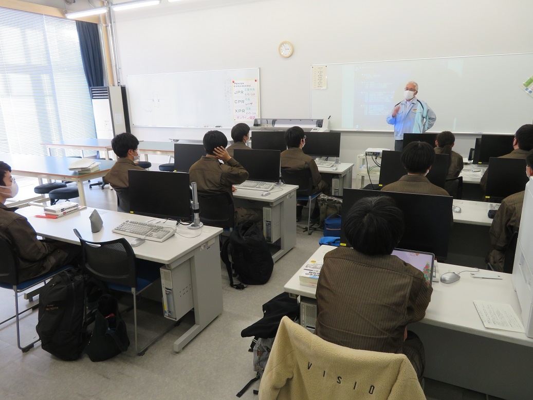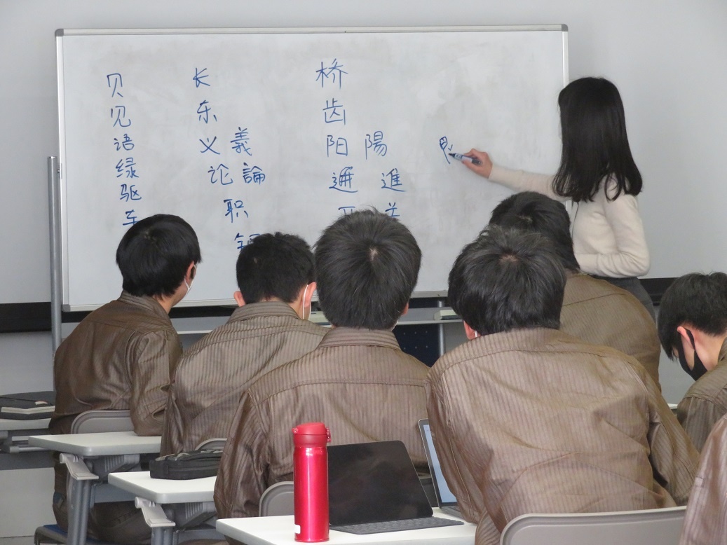 1年生3限は進路指導担当から「専攻科の就職活動について」説明がありました。先輩達が就職した会社紹介と、インターンシップに参加する際の注意点などについて学びました。 また2年生「総合演習Ⅱ」で取り組んだ「中国語」(最終回)の授業がありました。工業に関する中国語について学びました。