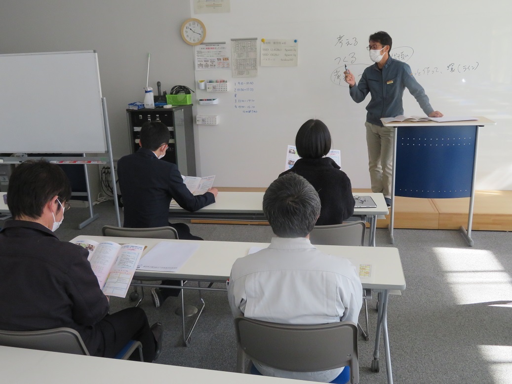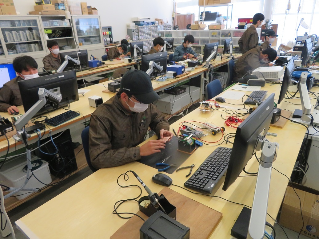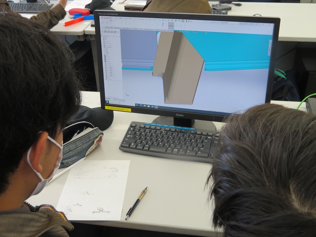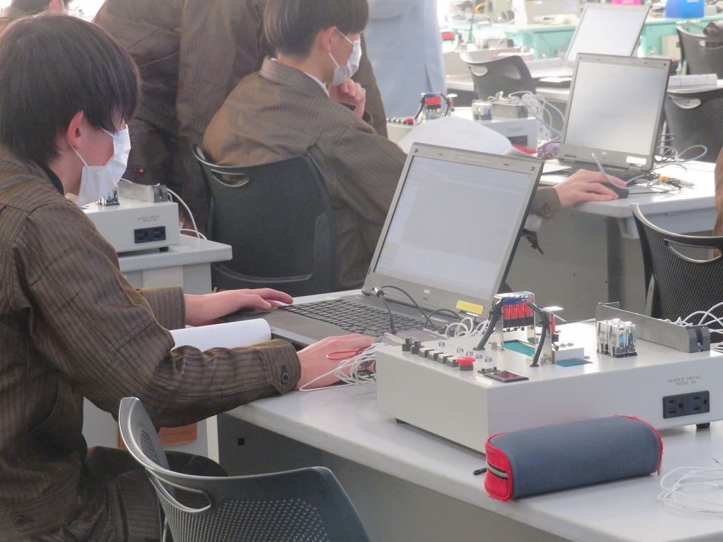 生産システムコース「マシニングセンタ5軸Ⅰ」、情報システムコース「ソフトウエア」、自動車・航空産業コース「3D CAD」、エネルギー産業コース「シーケンス・PLC」を学びました。今日も本科2年生担任の4名の先生方に専攻科見学(2日目)を実施し、専攻科の説明、その後、設備や実習の様子を見学するなど進路指導に活かしていただく取組を行いました。