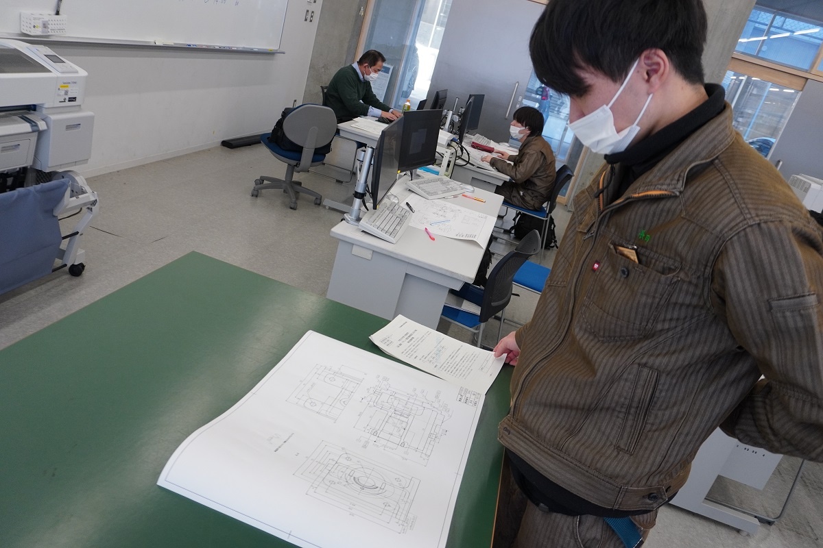 1月21日(金)に予定されている発表会まで残り2回となり、まとめや発表に向けて準備も大詰めです。来週末には技能検定「機械製図(CAD)」の試験があり、受験する生徒たちは過去問を使って図面を読み取る作業を繰り返し行っています。