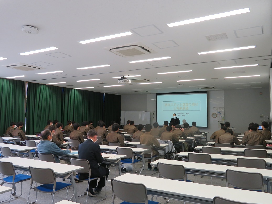 2年生2限は「抵抗スポット溶接の現状と未来」(講師:山梨大学名誉教授 園家先生)について講演を聴きました。また1年生4限は「技能講習会」(講師:株式会社ヒップ)では、講師の方の入社からの経験談について講演を聴きました。 専攻科では、座学・実習の他にも、現場で活躍されている方の講演を聞く機会が沢山あります。