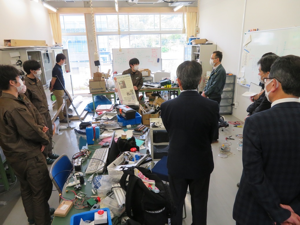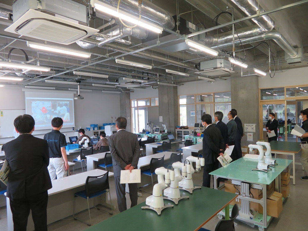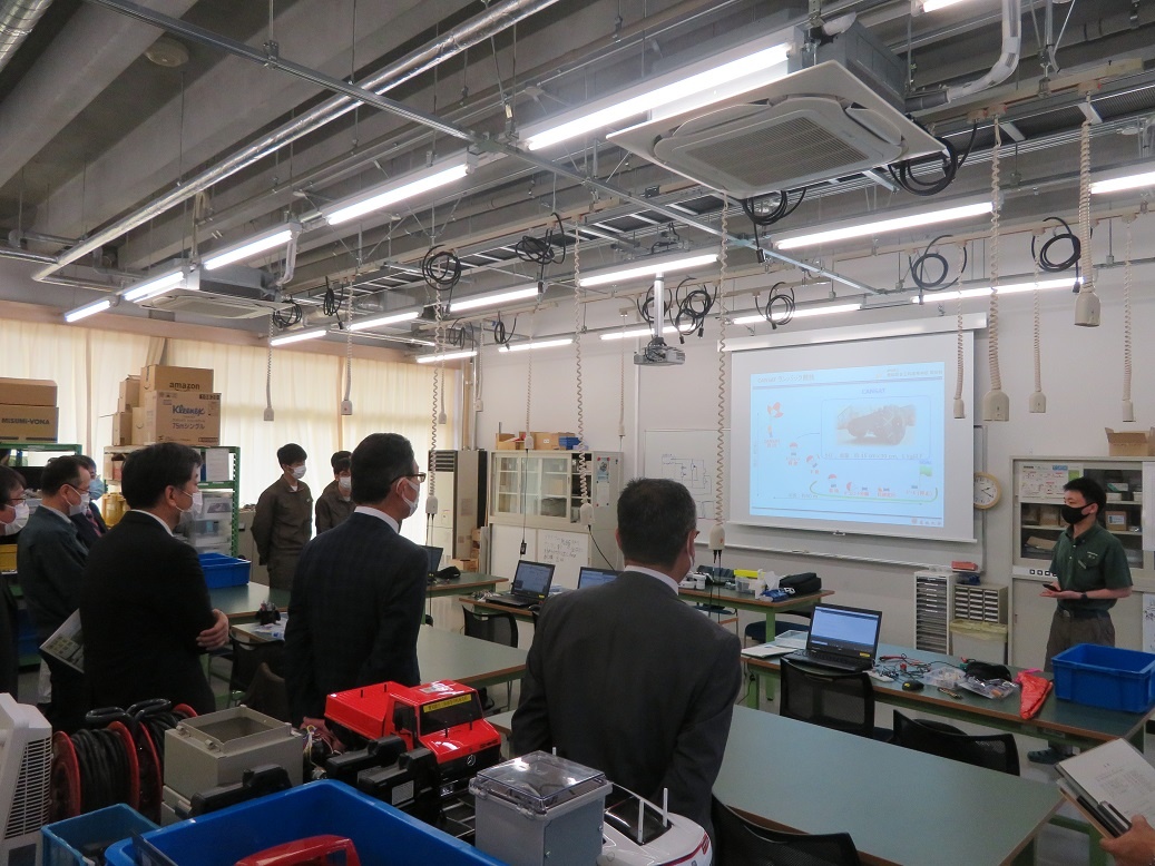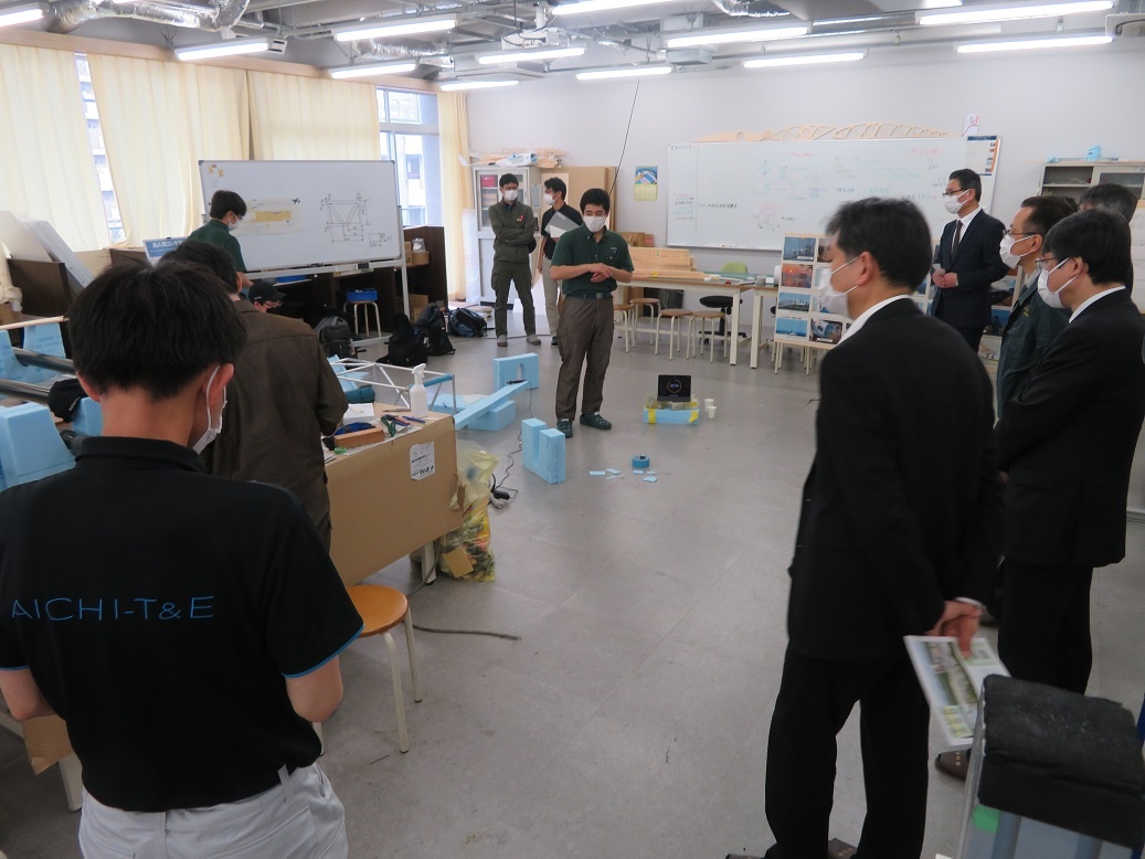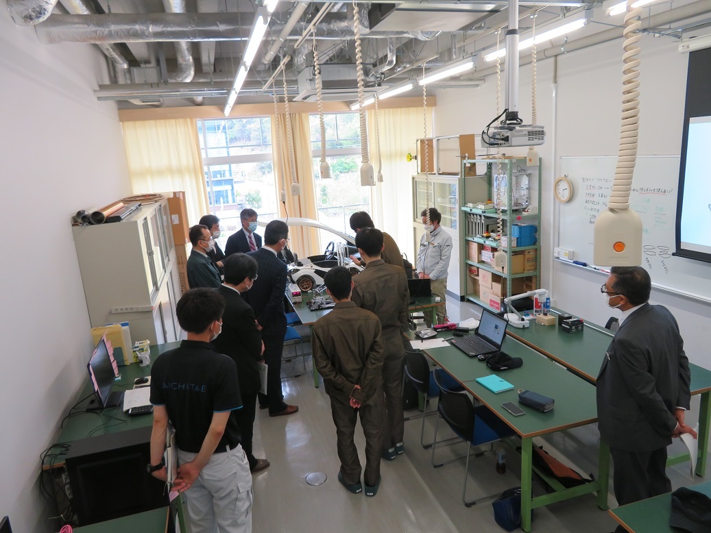 今日は午後から名城大学理工学部の方々が専攻科の見学に来られました。2年生「総合実習Ⅱ」の様子を見学され、生徒達は取組について説明しました。専攻科ではこうした視察が何度かあり、生徒達にとっても貴重な経験をする機会となっています。
