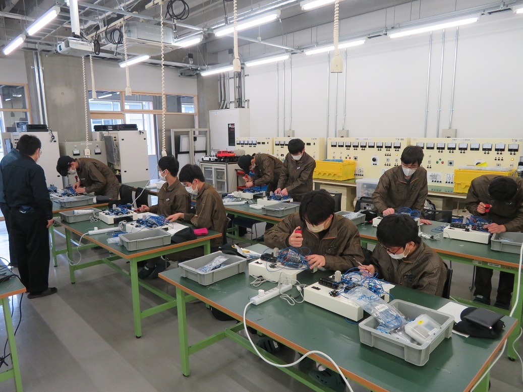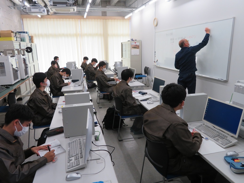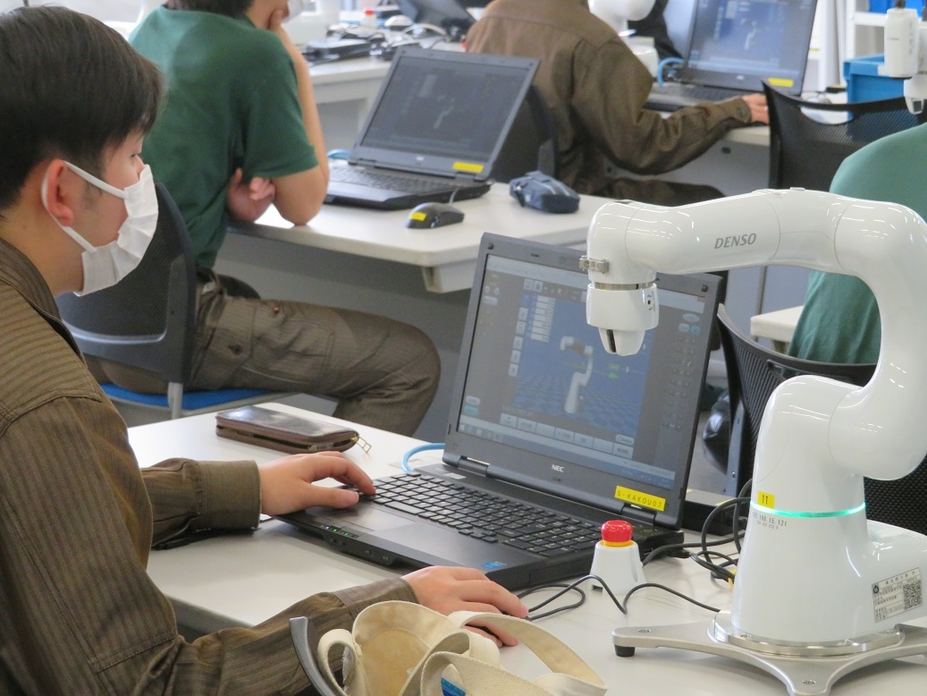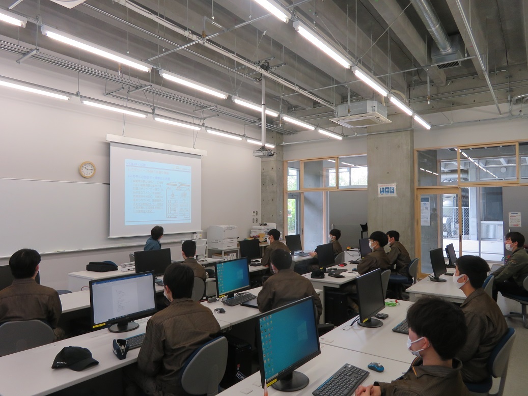 月曜日は1年生が座学、2年生はコース実習です。 2年生のコース実習では生産システムコース「マイコンとネットワーク」、情報システムは「MATLAB」、自動車・航空産業コースは「ロボット特別教育」、エネルギー産業コースは「電気保全」に取り組みました。