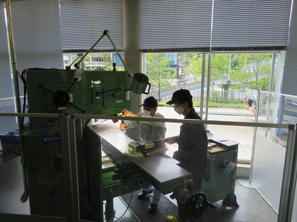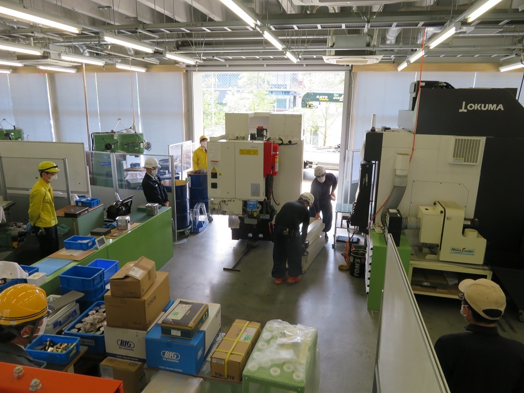 1年生総合実習(3回目)でした。それぞれの活動に取り組みました。 2年生「生産管理技術Ⅱ」では、トヨタ自動車からみえた講師の方から工場の生産効率を上げるための最適なレイアウト作りについて現場の改善の仕方を教えて頂きました。 また専攻科に新しい工作機「ロボドリル」が搬入されました。今後、実習で使用されるのが楽しみです。