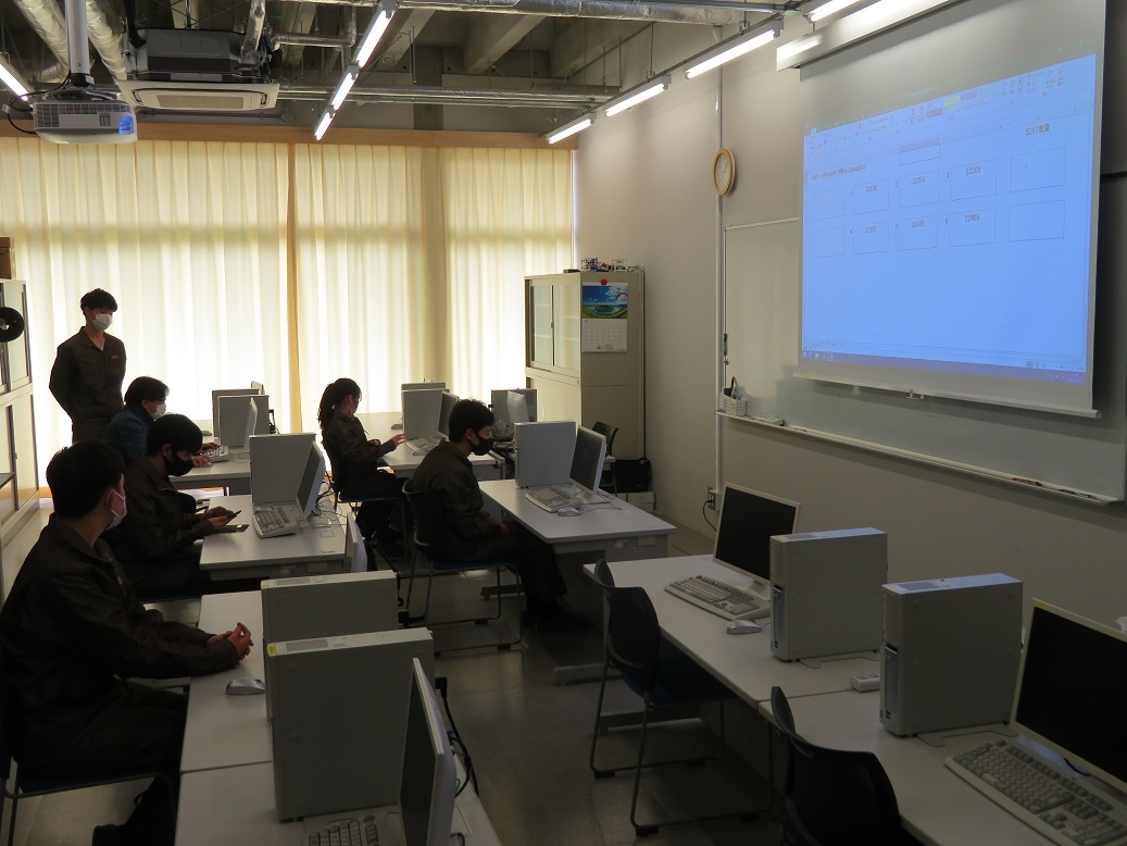 1年生3限『総合演習Ⅰ』は「資格検定 前期」でした。希望コース(機械保全、機械検査、電気主任、基本情報、MOS)に分かれ、検定取得に向けて取り組みました。 2年生4限『総合演習Ⅱ』は外部講師による「就職・進学 面接練習」を行いました。手鏡を使って表情筋の訓練等をしました。 また授業後は第1回防災訓練(専攻科単独)を行いました。