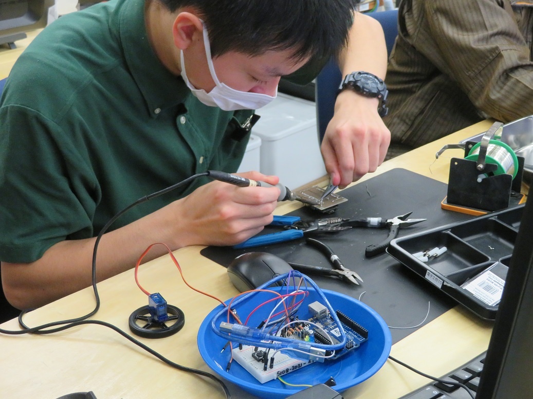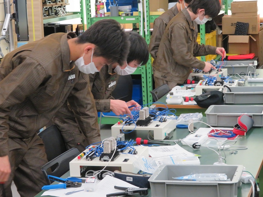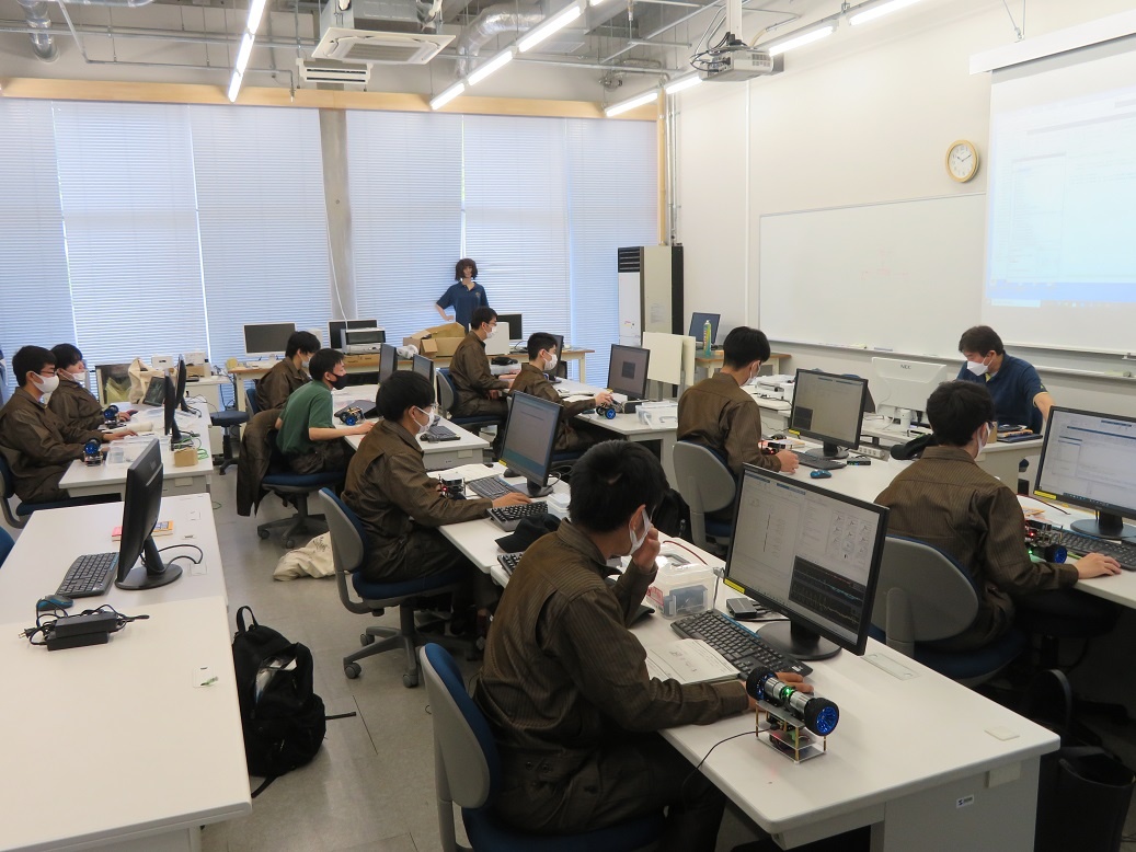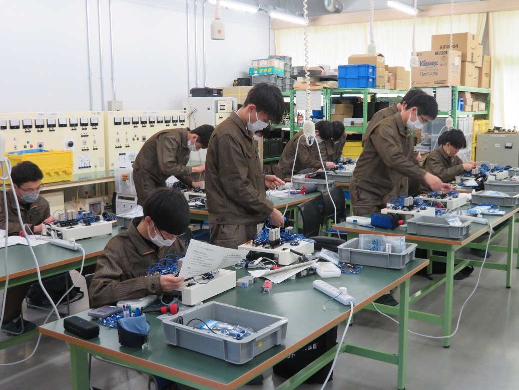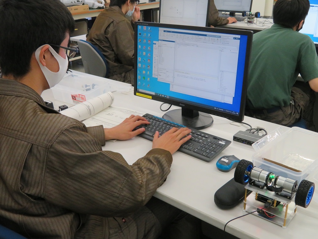2年生コース実習は生産システムコース「マイコンとネットワーク(マイコン制御基礎)」、情報システムコース「MATLAB(コンピュータ制御利用)」、自動車・航空産業コース「ロボット特別教育(一般知識・法令)」、エネルギー産業コース「電気保全(応用作業2)に取り組みました。