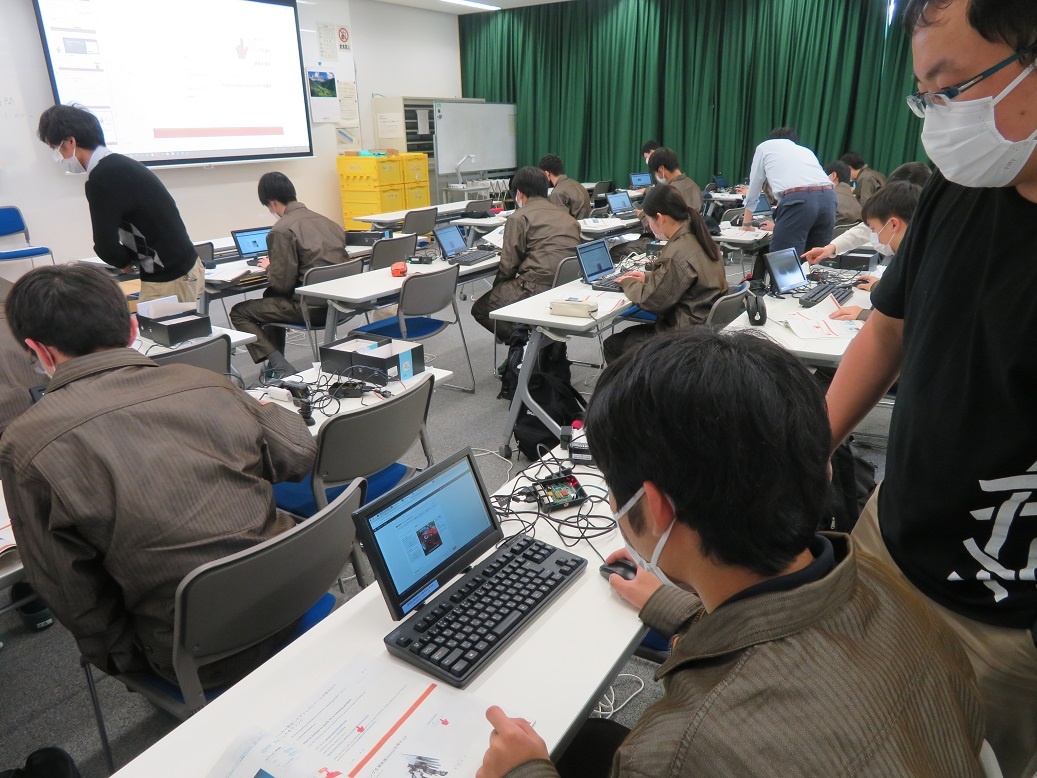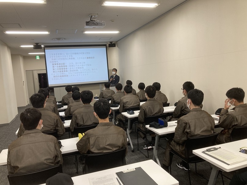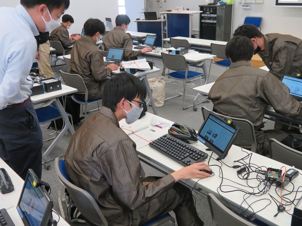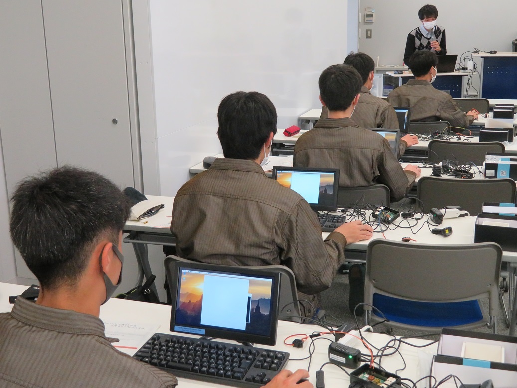 1年生コース実習は自動車・航空コース、電気・制御コース「AI講習」、情報・ITコース、電子・ロボットコース「ヤマザキマザック工作機械博物館見学(校外実習)」に取り組みました。 2年生「体育実技Ⅲ」はバレーボールでした。