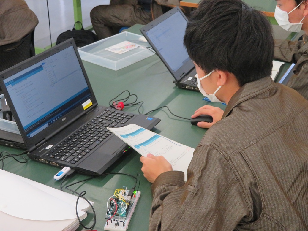 1年生コース実習は、自動車・航空コース「基礎実習(旋盤)」、電気・制御コース「シーケンス・PLC(応用命令)」、情報・ITコース「LINUXシステム(基礎プログラミング)」、電子・ロボットコース「基礎実習(3Dプリンタ)」に取り組みました。
