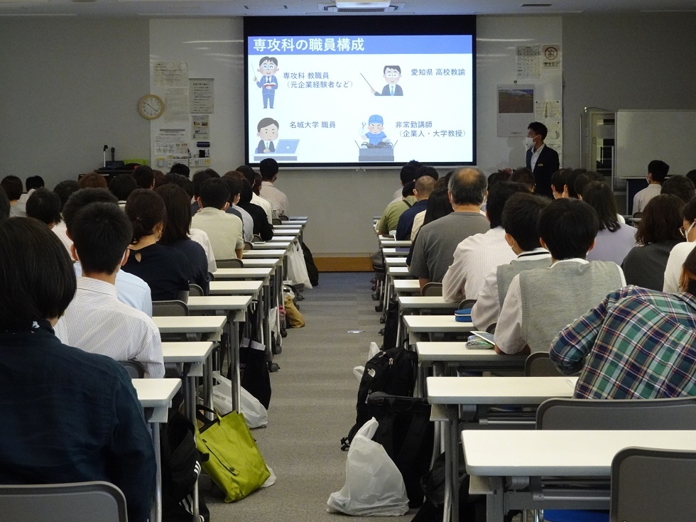 令和4年度第1回専攻科学校説明会が開催されました。 専攻科の概要、学校生活、入試、進路などの全体説明の後、施設や実習の様子を自由に見学していただきました。第1部、第2部合わせて210名を超える沢山の方にご来場いただき、生徒たちも自分が学んだことを他者に伝えるいい経験ができました。