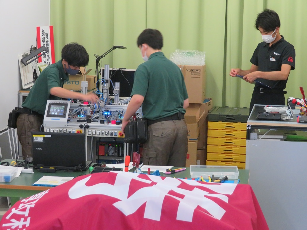1年生は総合実習に取り組みました。「電気系・高度ものづくり技能の追求と実践(メカトロ)班は、豊田自動織機の技能五輪指導部の方を講師に迎え、指導を受けています。8月に行われる若年者ものづくり競技大会に向けて練習に励んでいます。