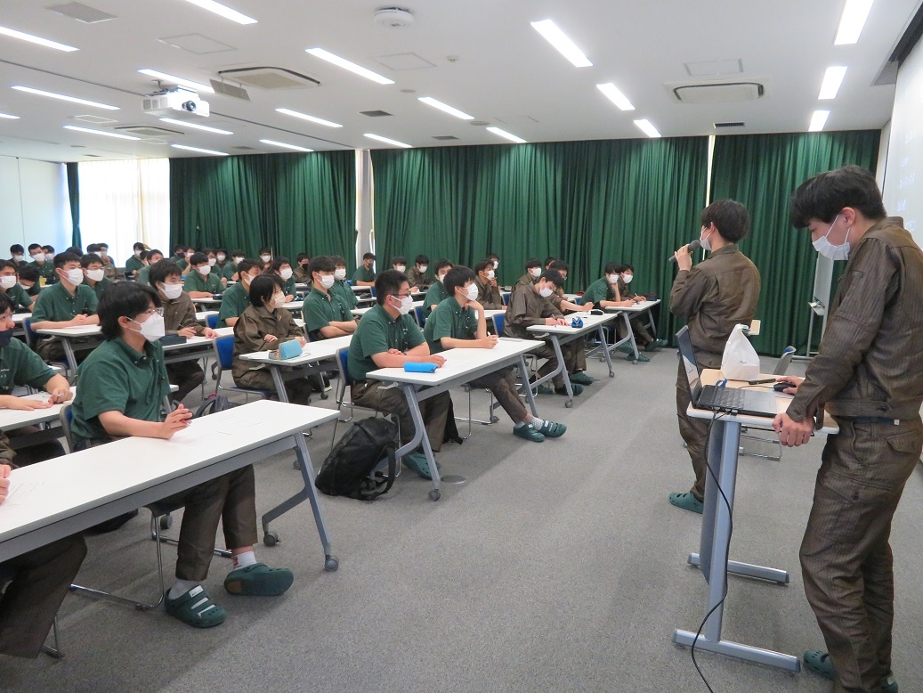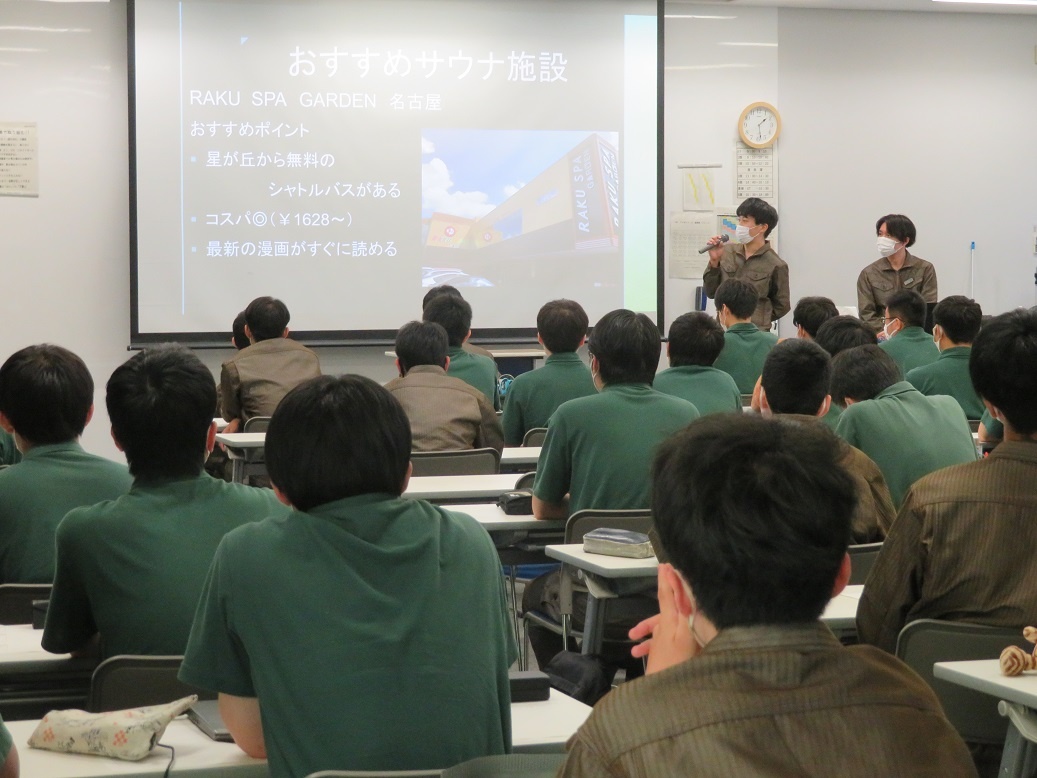 今日の3限「教育コミュニケーション論」は『2年生から1年生に伝えたいこと』という内容で4班が15分ずつ発表しました。「愛知総合工科高校専攻科の紹介」「自己啓発の獲得」「プライベートの過ごし方」について、2年生が発表を行い、1年生からもいろいろ質問があり、活発な授業になりました。