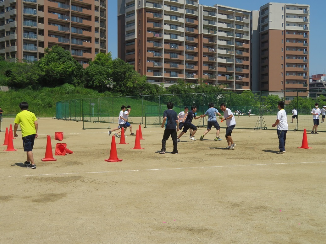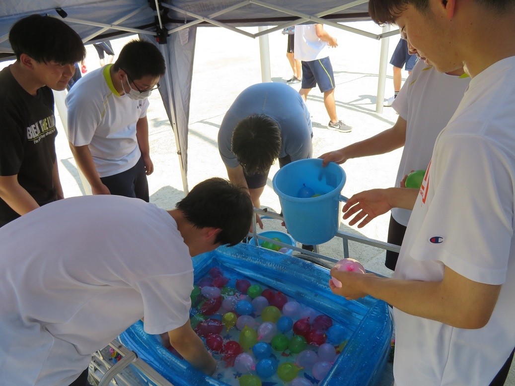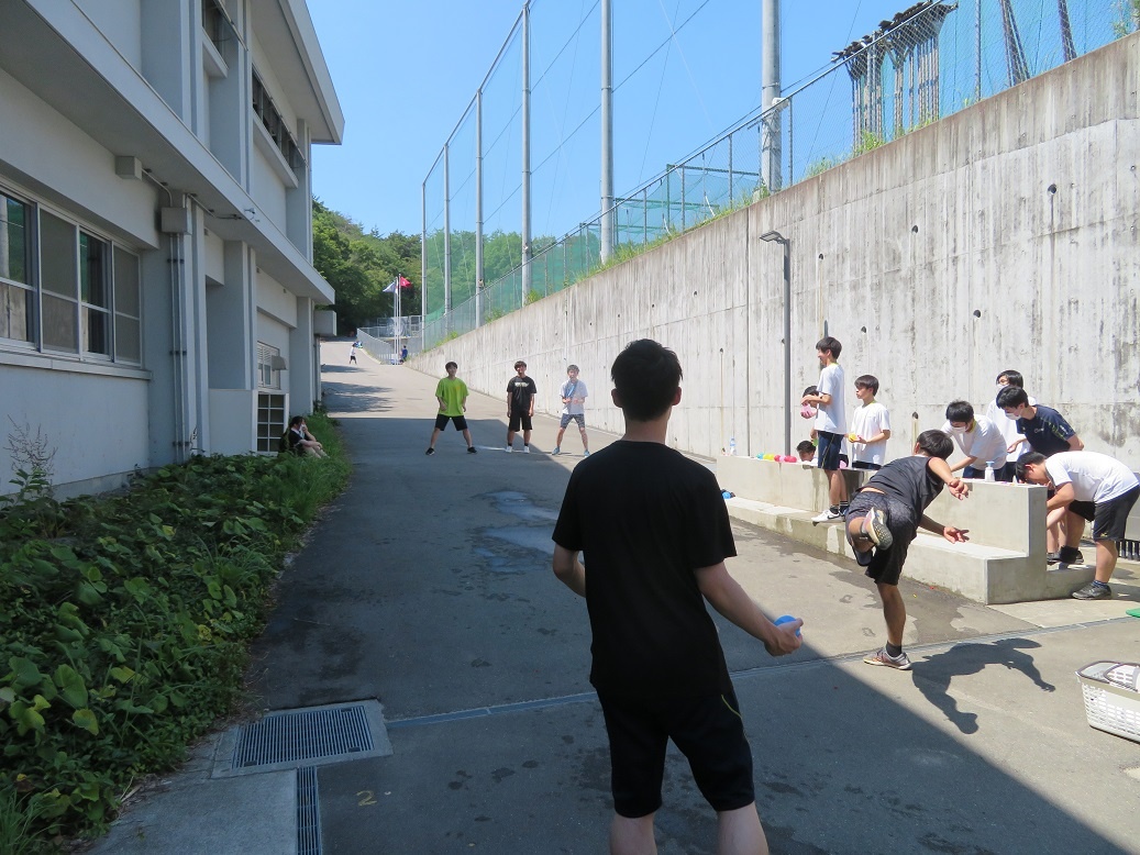 2年生は総合実習でした。「次世代エネルギー・先端技術を活用した新モビリティの研究と実践」班は、小学校にて出前授業を行いました。1年生「体育実技Ⅰ」では、水風船を使って、自分たちでゲーム作りに取り組みました。