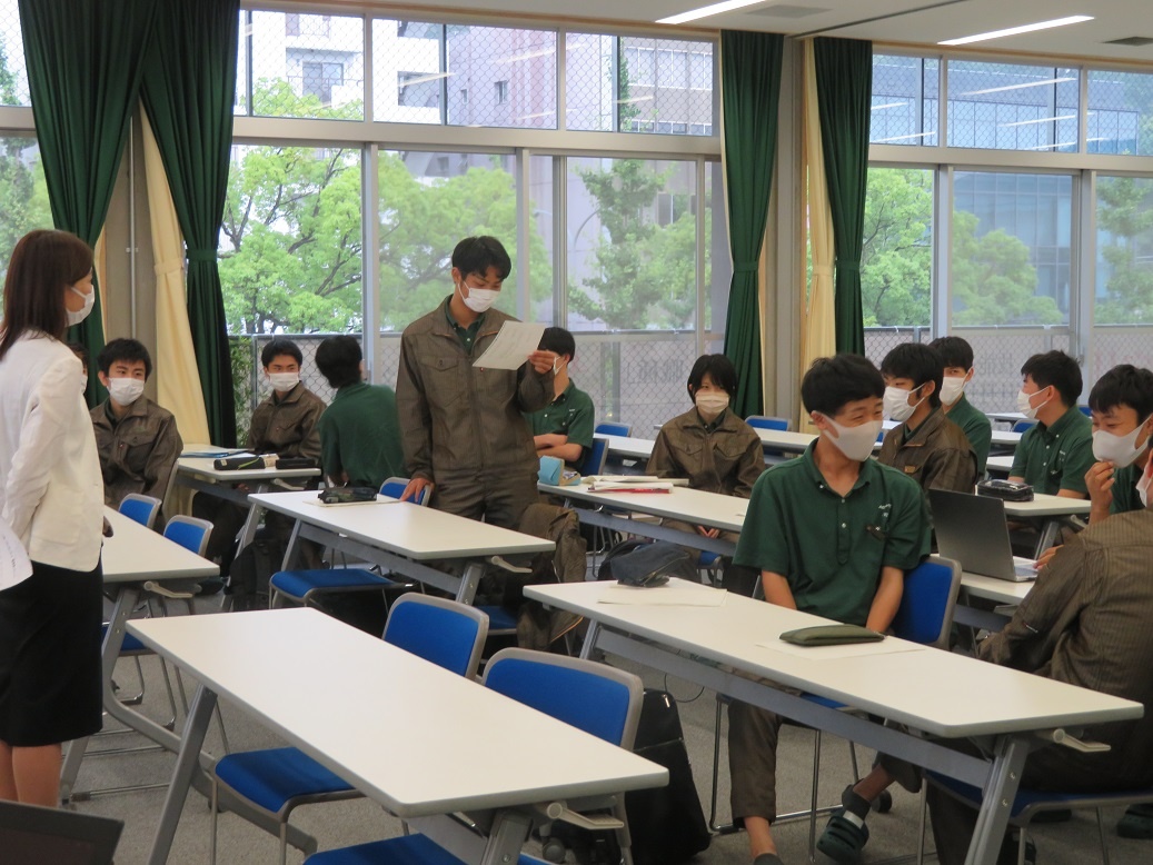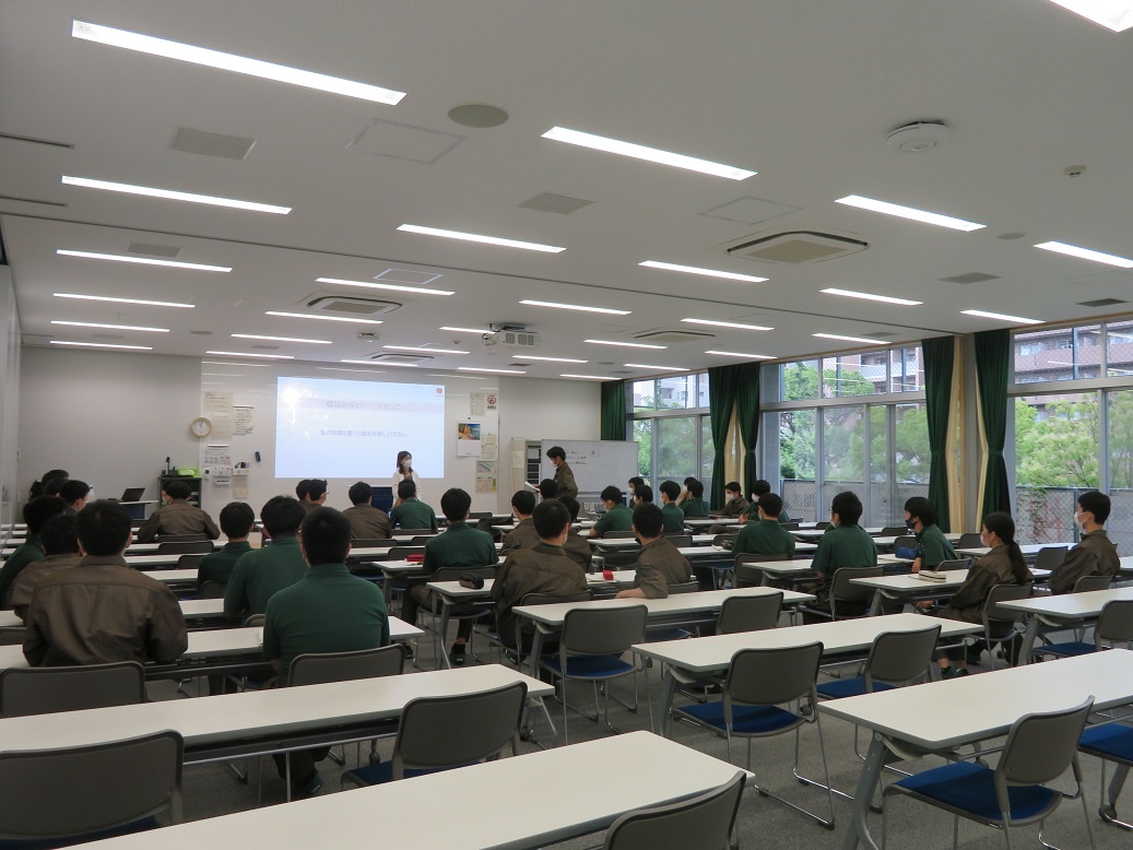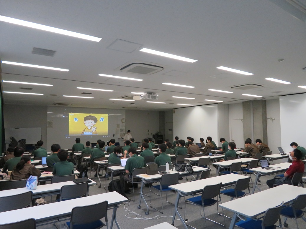 2年生2限は「中国語」でした。 専攻科では中国語も勉強しています。先生は名古屋大学の研究室で学ぶネイティブな中国人の先生にお願いしています。基本的な会話や、工業分野の内容を読み、発音を中心に取り組んでいます。中国語の発音は、日本人にとって難解だと身に沁みますが、その言葉による文化の違いがあることも気づかされています。
