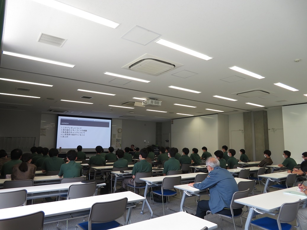 2年生は大槻先生(トヨタ自動車(株))より「エンジニアとしてのキャリア」という講演を聴きました。ご自身のモノづくりの経験から様々な話を聞くことができました。