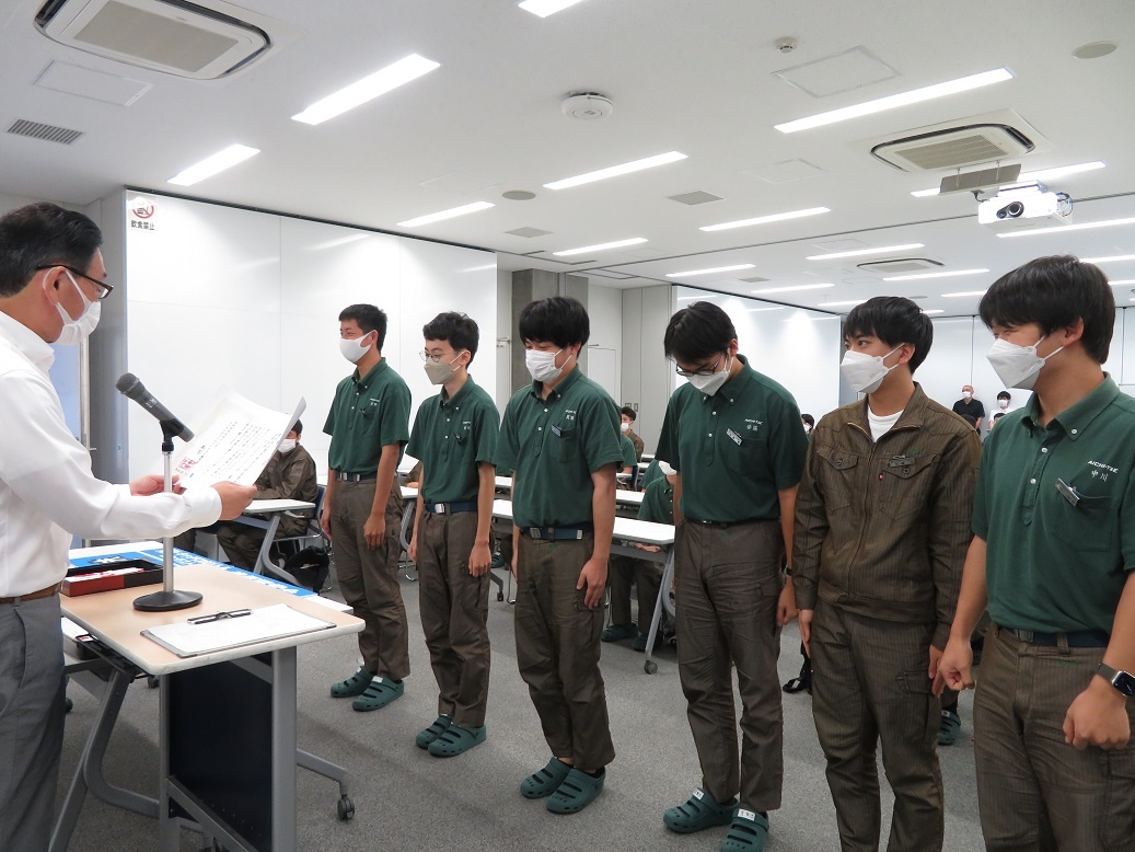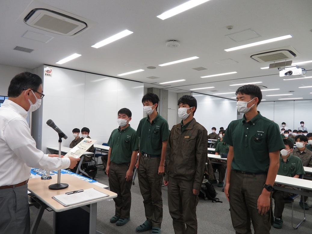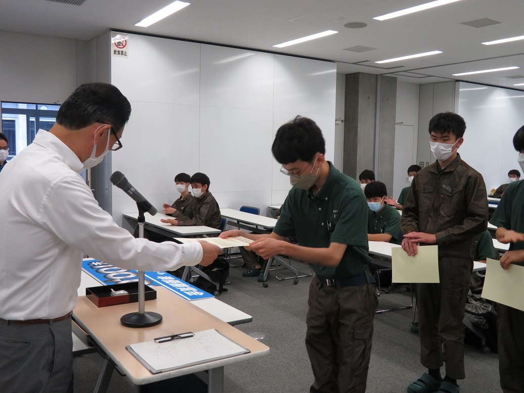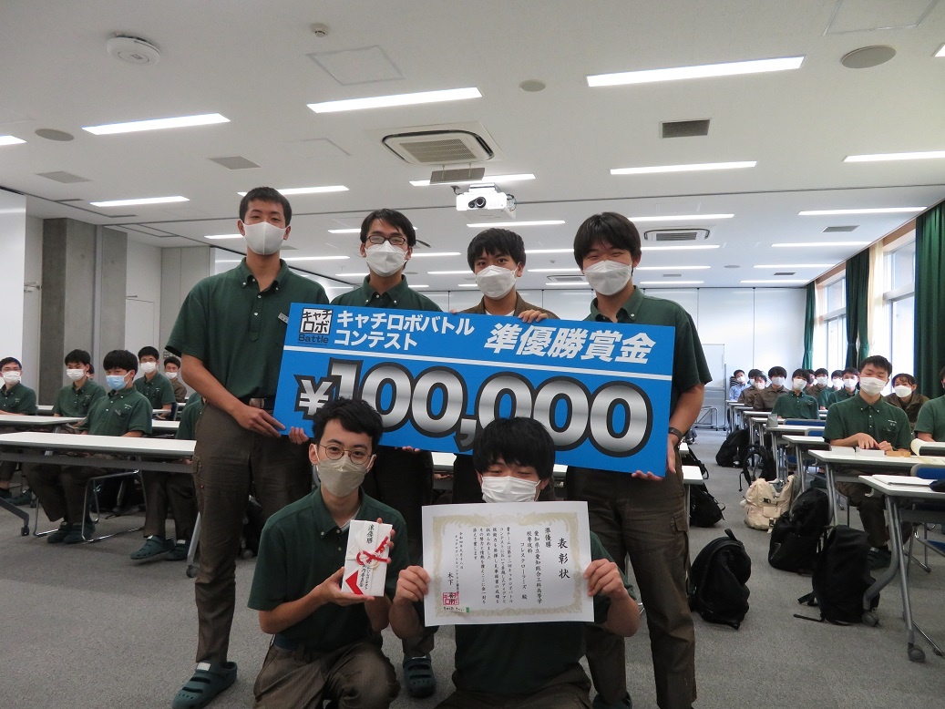 1年生・2年生合同の表彰式が行われました。前期に取り組んだ、若年者ものづくり競技大会、ワールドグリーンチャレンジ、キャチロボバトル、技能検定の成果がみんなの前で披露されました。