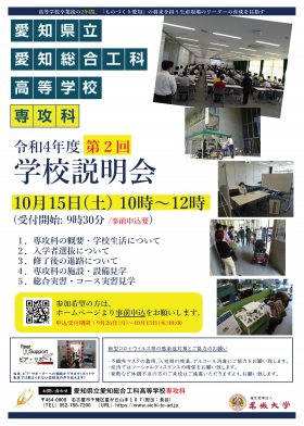 2年生コース実習でした。生産システムコース「シーケンス・PLC」、情報システムコース「アプリソフト製作」、自動車・航空産業コース「パワーエレクトロニクス@三菱FAセンター」、エネルギー産業コース「電子計測・解析」に取り組みました。また、卒業アルバムの撮影も行われました。 本日より第2回学校説明会の事前申込を開始しました。ぜひNews(お知らせ)開催のご案内よりお申し込みください。