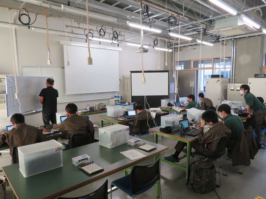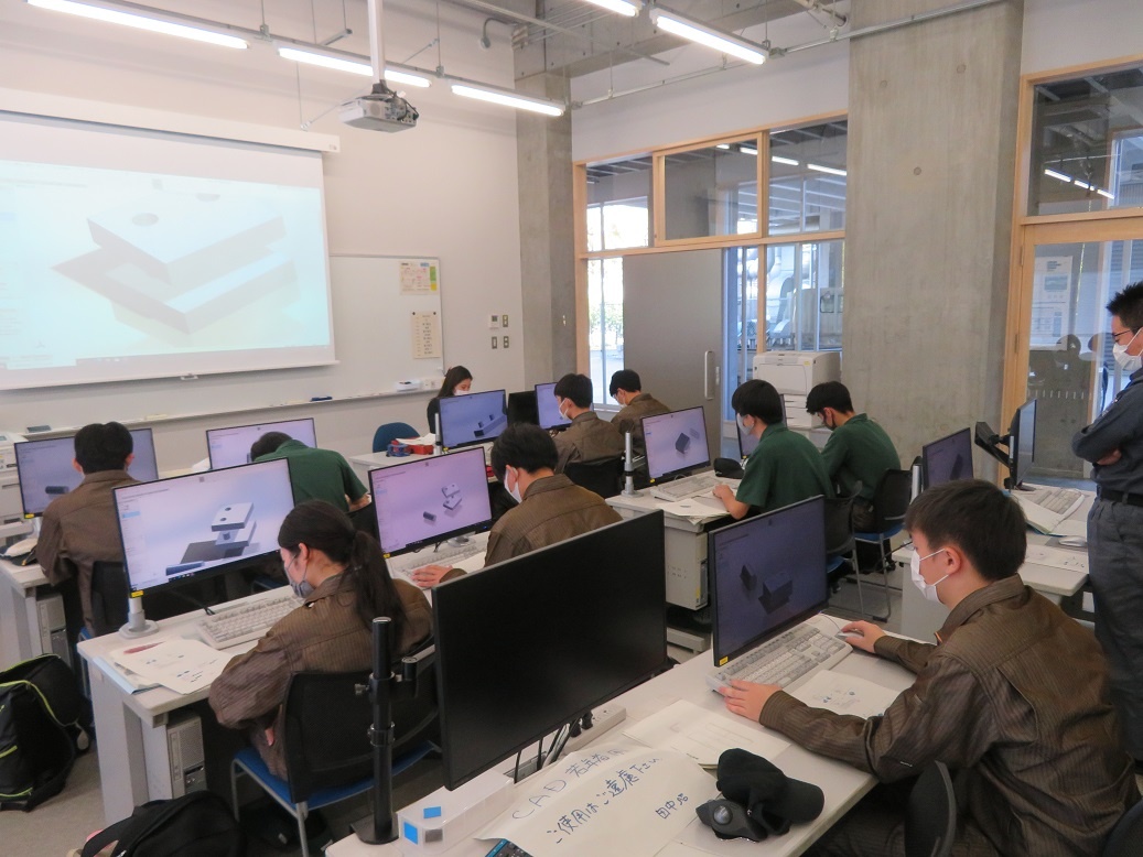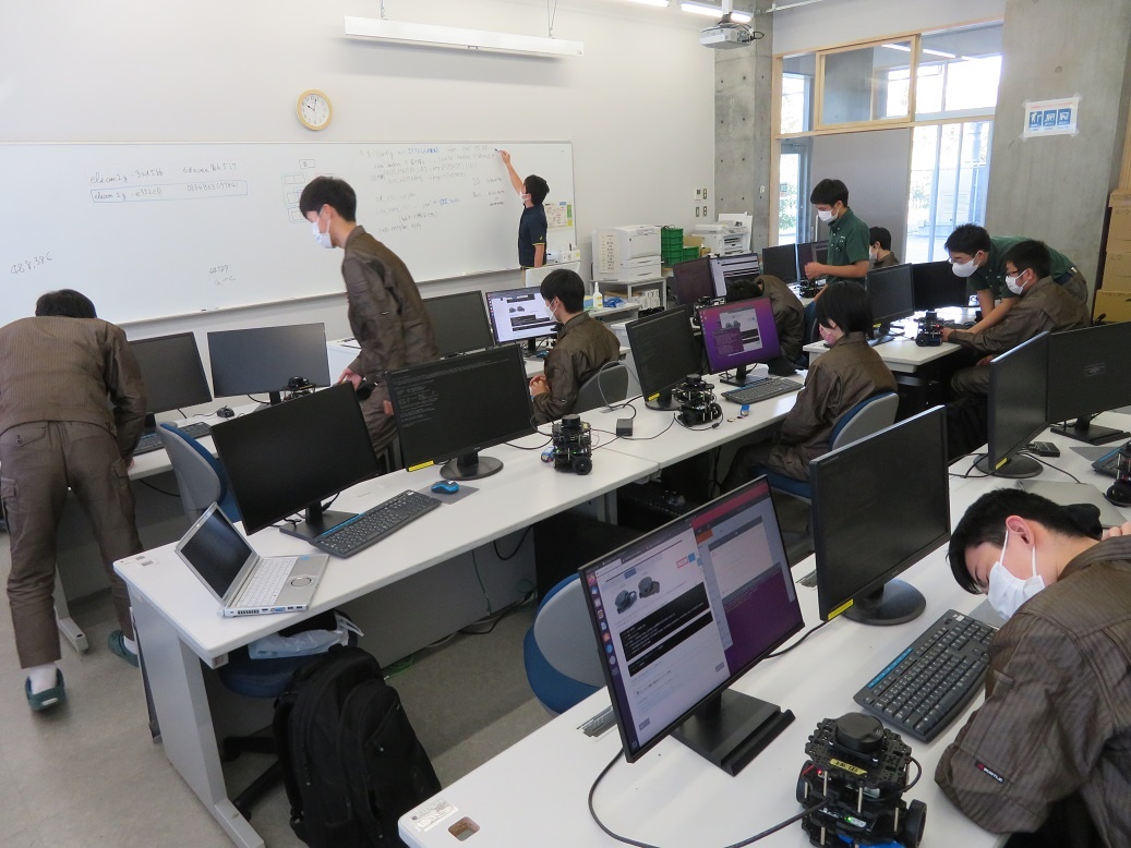 1年生がコース実習に取り組みました。自動車・航空コース「CAD」、電気・制御コース「Pythonプログラム基礎」、情報・ITコース「ロボット制御」、電子・ロボットコース「ロボット特別教育」に取り組みました。