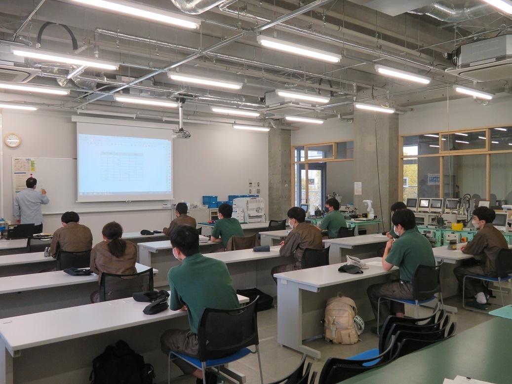 生産システムコース「シーケンス・PLC」、情報システムコース「アプリソフト製作」、自動車・航空産業コース「パワーエレクトロニクス@三菱FAセンター」、エネルギー産業コース「電子計測・解析」に取り組みました。「電子計測・解析」では、実際に走る自動車のデータを取り解析するという実習に取り組みました。