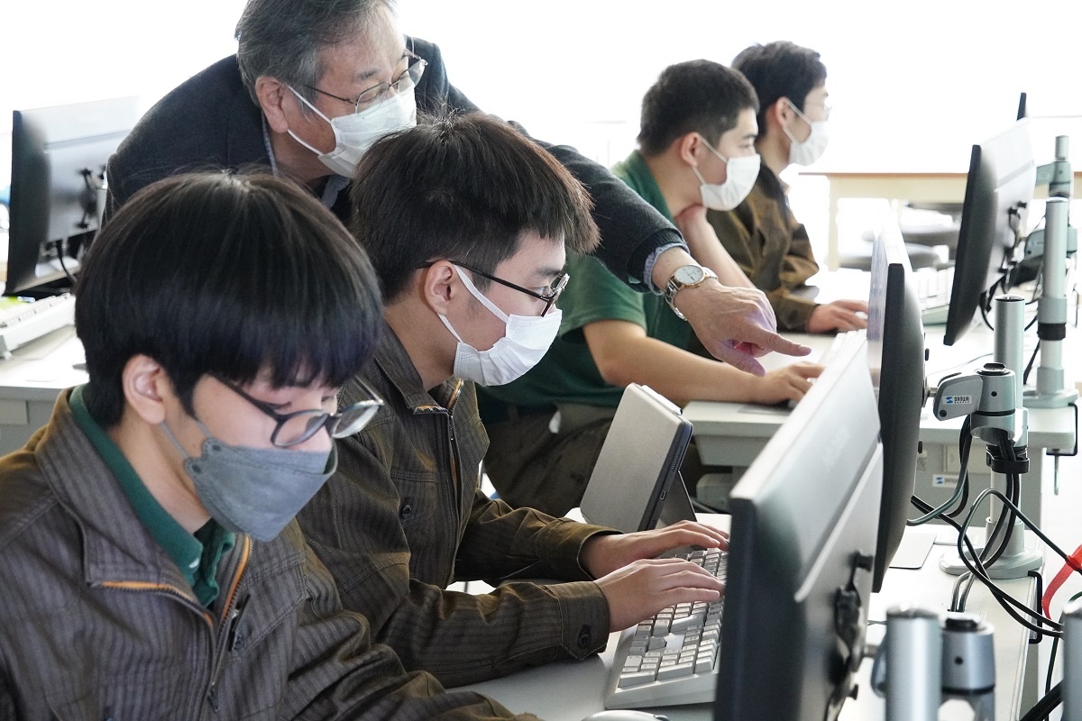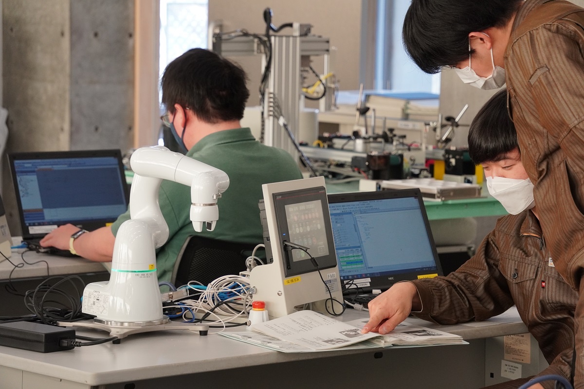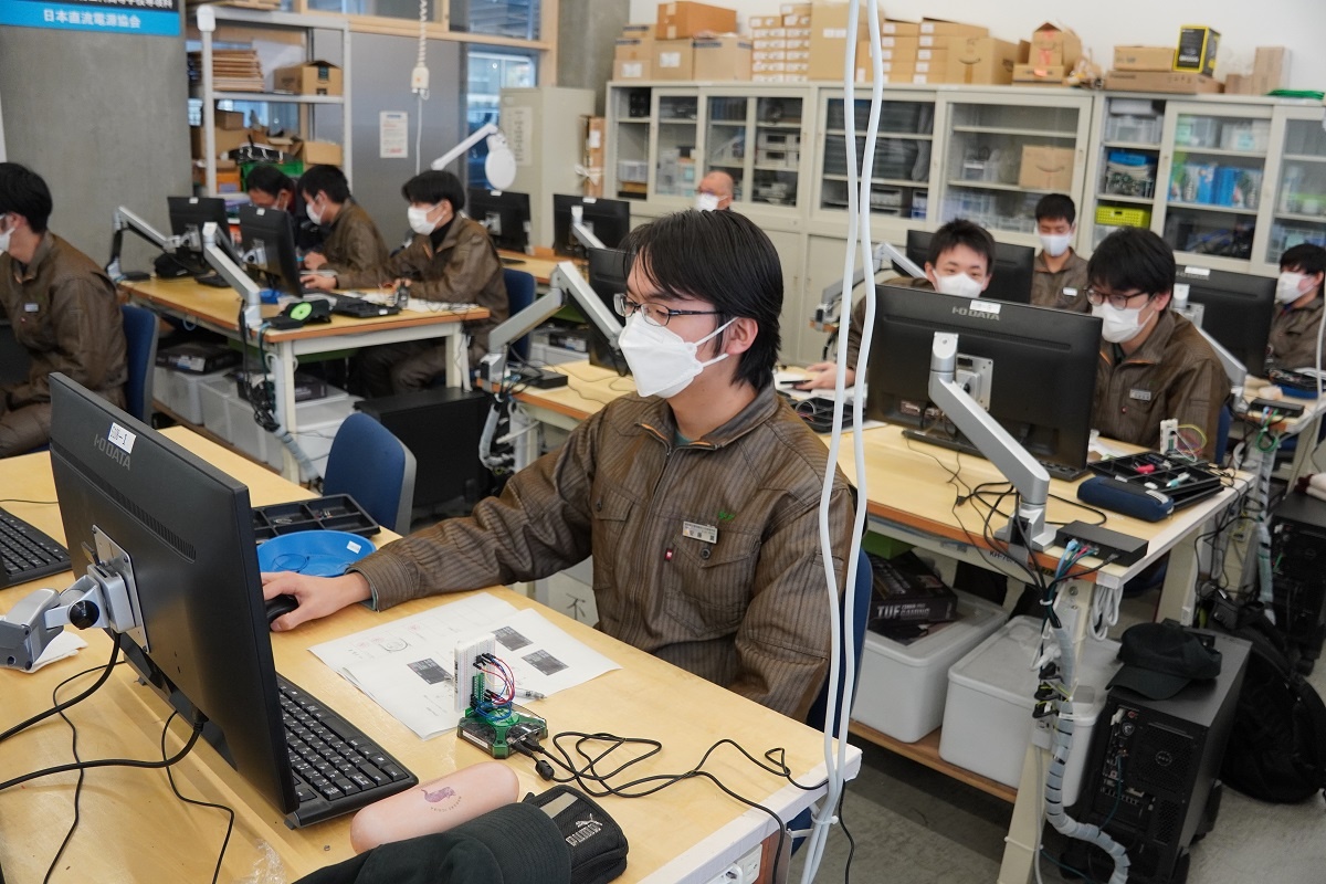 今日は2年生がコース実習に取り組みました。生産システムコース「ロボット応用」、情報システムコース「マイコン制御2」、自動車・航空産業コース「CAE解析Ⅰ」、エネルギー産業コース「電力インバータ@三菱FAセンター」に取り組みました。